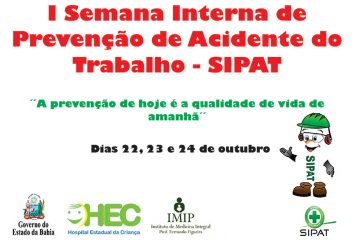 Uma semana voltada para a prevenção. Assim será o período compreendido entre os dias 22 e 24 deste mês, quando acontece no Hospital Estadual da Criança (HEC), a I Semana Interna de Prevenção de Acidente do Trabalho (SIPAT). O objetivo é, além de cumprir a legislação, dar continuidade aos trabalhos voltados para a prevenção de acidentes e doenças ocupacionais.