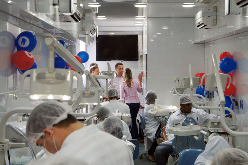 Equipado com 10 consultórios, a unidade móvel realiza cerca de 150 atendimentos por dia e oferece especialidades como odontopediatria, cirurgião bucomaxilo, clínico geral e profissionais que atendem pessoas com necessidades especiais. Entre os serviços prestados estão restaurações, extrações, cirurgias e tratamento de canal. De acordo com o dentista Plínio Zono, cada paciente faz, em média, 10 procedimentos.