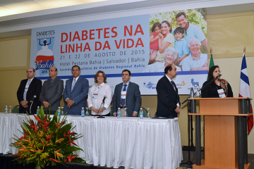 A importância do acompanhamento por equipe multidisciplinar e da educação continuada para os portadores de diabetes foi um dos pontos de destaque durante a instalação do evento Diabetes Bahia 2015, na manhã de desta sexta-feira (21), no Pestana Bahia Hotel. Durante o encontro, que este ano teve como tema “Diabetes na Linha do Tempo”, o subsecretário estadual da Saúde, Roberto Badaró, representando o secretário Fábio Vilas-Boas, falou sobre a relevância do tema diabetes no mundo, no Brasil e na Bahia, e destacou o Centro de Diabetes e Endocrinologia da Bahia (Cedeba) como um dos melhores serviços da América Latina.