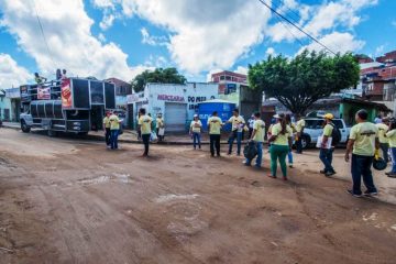 Em clima de alegria, mas com o compromisso de fazer a coisa certa que a equipe do faxinaço da Secretaria Municipal de Saúde trabalhou duro na manhã desta quarta-feira, no bairro Pedro Gerônimo, em Itabuna. A ação, que conta com o apoio e a participação de equipes da Secretaria de Saúde da Bahia, integra a campanha de enfrentamento ao Aedes aegypti e consiste na sensibilização dos moradores para não deixar água parada em vasilhames, mesmo que seja numa simples tampa de garrafa. A orientação também é para que as famílias cubram tanques e caixas d’água com telas, preferencialmente, para evitar que mosquito deposite OS ovos.