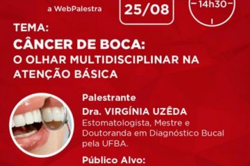A Secretaria da Saúde do Estado da Bahia (Sesab), através da Diretoria de Gestão do Cuidado (DGC), realiza na próxima quinta-feira (25), às 14h30, uma Webpalestra sobre “Câncer de Boca: o Olhar Multidisciplinar na Atenção Básica”, ministrada pela professora estomatologista, mestre e doutoranda em Diagnóstico Bucal pela Ufba, Virgínia Uzêda.