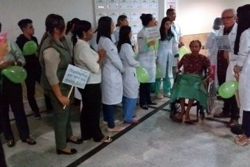 Muito feliz pela recuperação da esposa, José Roberto também agradeceu pela celebração e cuidado que Marinalva recebeu durante a permanência na unidade. “Eu só tenho a agradecer a cada um, desde a equipe técnica, enfermeiros, médicos a equipe de limpeza. Tudo pra mim foi 100%, do atendimento comigo ao cuidado com ela. Agradeço a todos que ajudaram e cuidaram de minha esposa. Aqui consegui fazer muitas amizades e espero voltar com ela aqui andando. Muito obrigado e que Deus abençoe cada um”, disse emocionado.