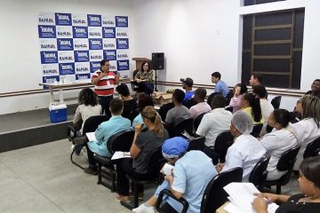 Os profissionais do transporte participaram ativamente do treinamento que contou com a presença do bioquímico Fernando Rocha. Na oportunidade, ele abordou temas variados como: montagem da maleta de transporte, armazenamento de hemocomponentes e como agir em casos de intercorrências.