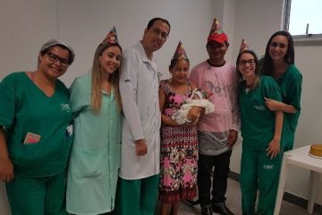 Como parte do trabalho de humanização realizado na instituição, a família teve uma confraternização de despedida com a equipe e tapete vermelho para a saída da unidade.