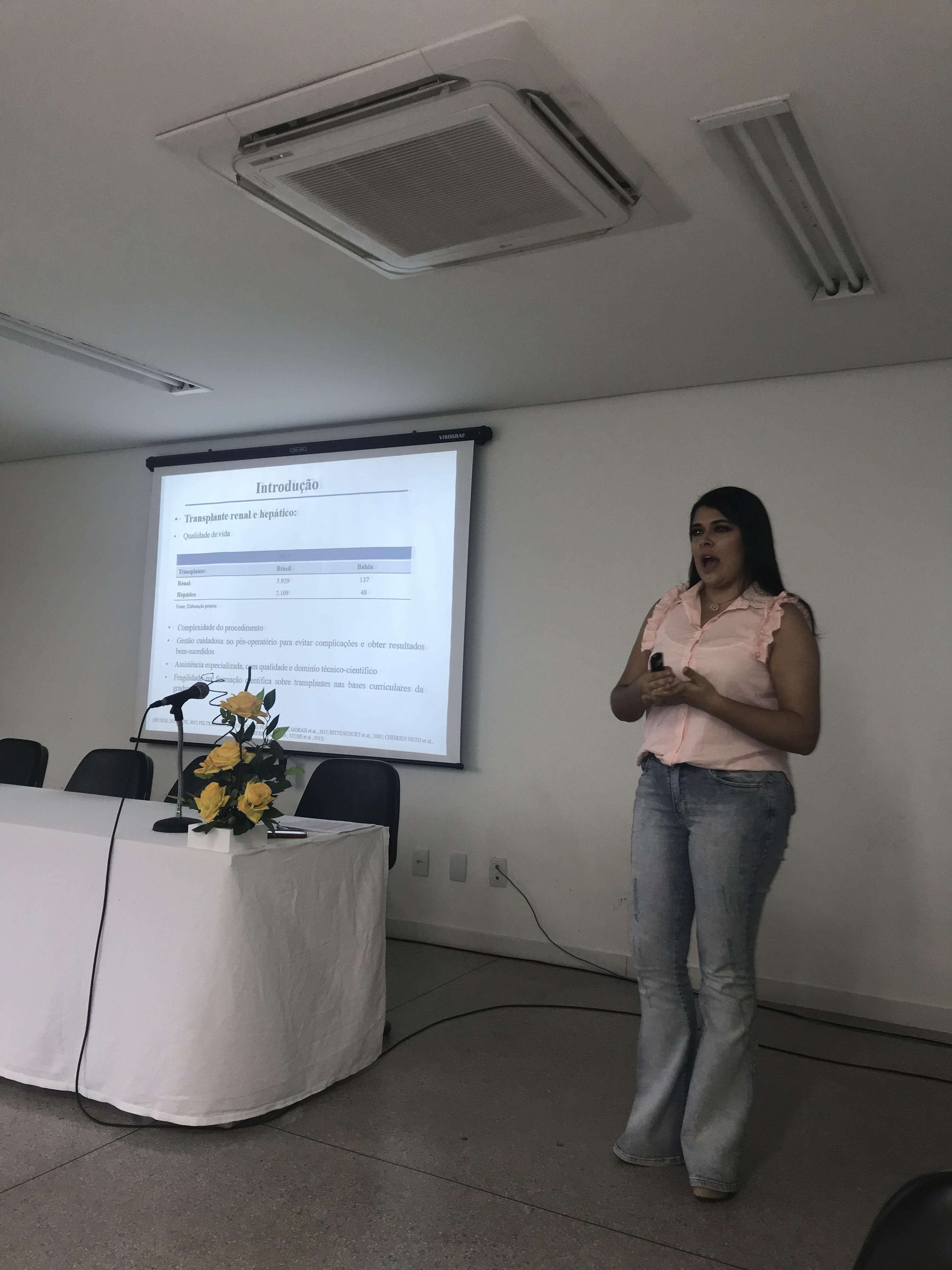 Katherine produziu a pesquisa ‘Intervenções de enfermagem para prevenção de delirium em pacientes críticos’. Manoela produziu ‘Delirium em pacientes críticos: concepção das enfermeiras’. Priscila produziu ‘Cuidado ao paciente em pós-operatório imediato de transplante renal e hepático: concepção dos enfermeiros’. Mariana produziu ‘Fatores associados à ocorrência de sepse em pacientes internados em unidades de terapia intensiva’. Todas elas apresentaram os trabalhos no auditório do edifício anexo ao hospital.