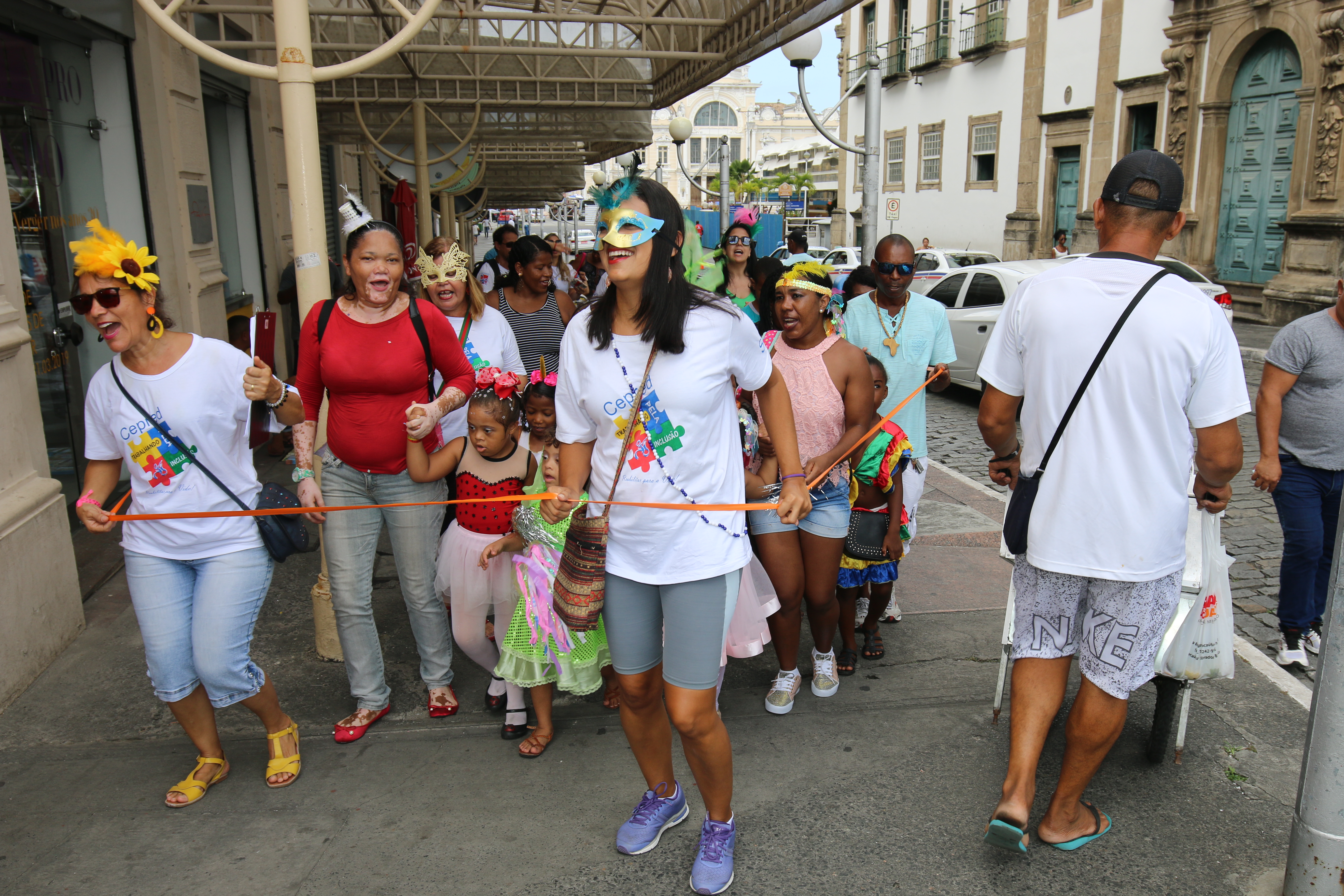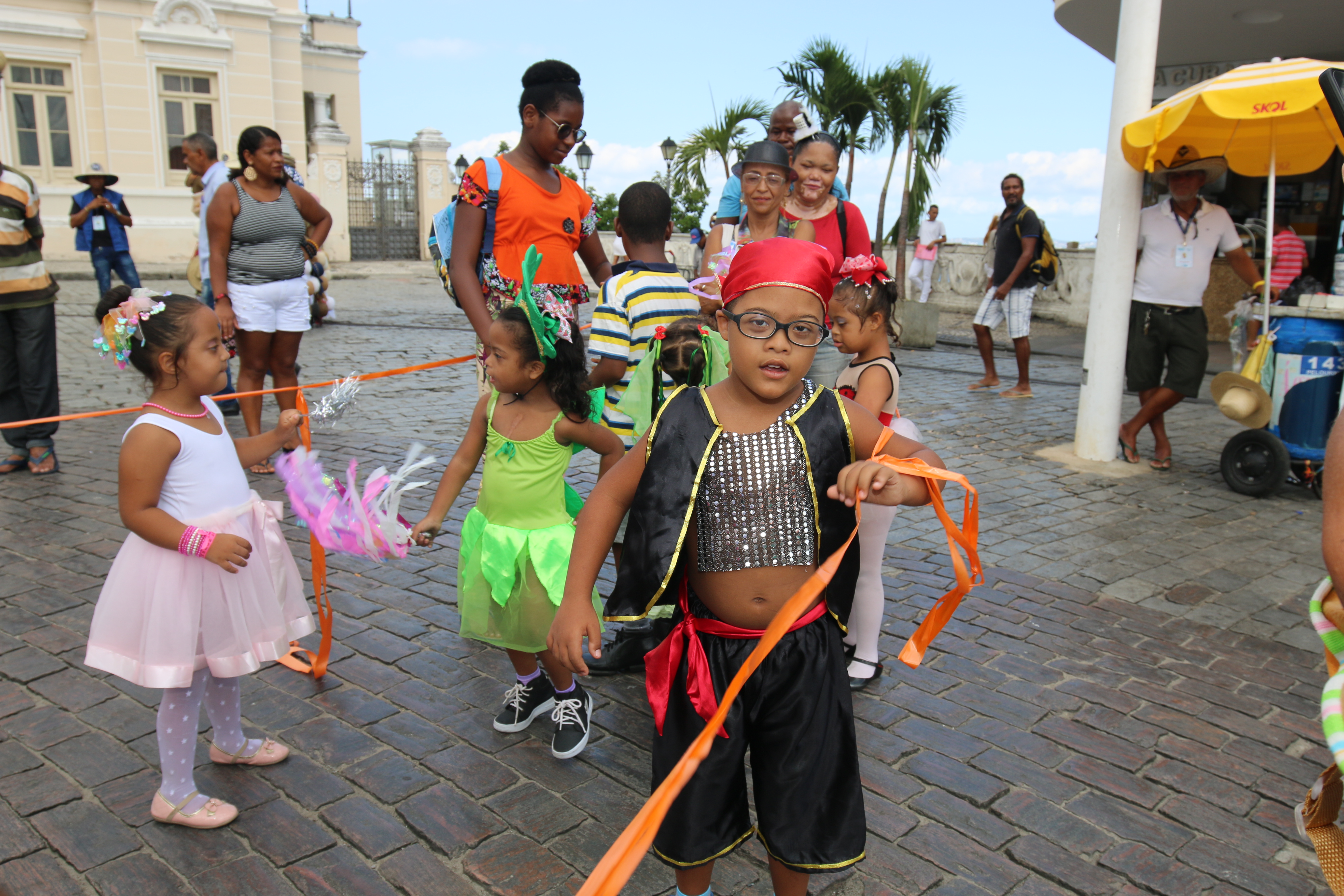 Fantasiadas de bailarina, joaninha, unicórnio, sambista, borboleta e pirata, as crianças desfilaram por algumas ruas do Centro Histórico de Salvador. O objetivo da ação, explicou a psicóloga Jamile Chastinet, é “promover a socialização e interação dessas crianças”, fazendo com que o tratamento são se restrinja apenas às dependências de um consultório.