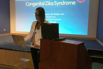 A neuropediatra Adriana Mattos – responsável pelo atendimento ambulatorial dos pacientes com microcefalia do Hospital Geral Roberto Santos (HGRS) – apresentou as especificidades da instituição em uma palestra na Universidade de Glasgow, na Escócia, nessa terça-feira (2). O convite aconteceu após visita dos representantes do Reino Unido à capital baiana.