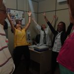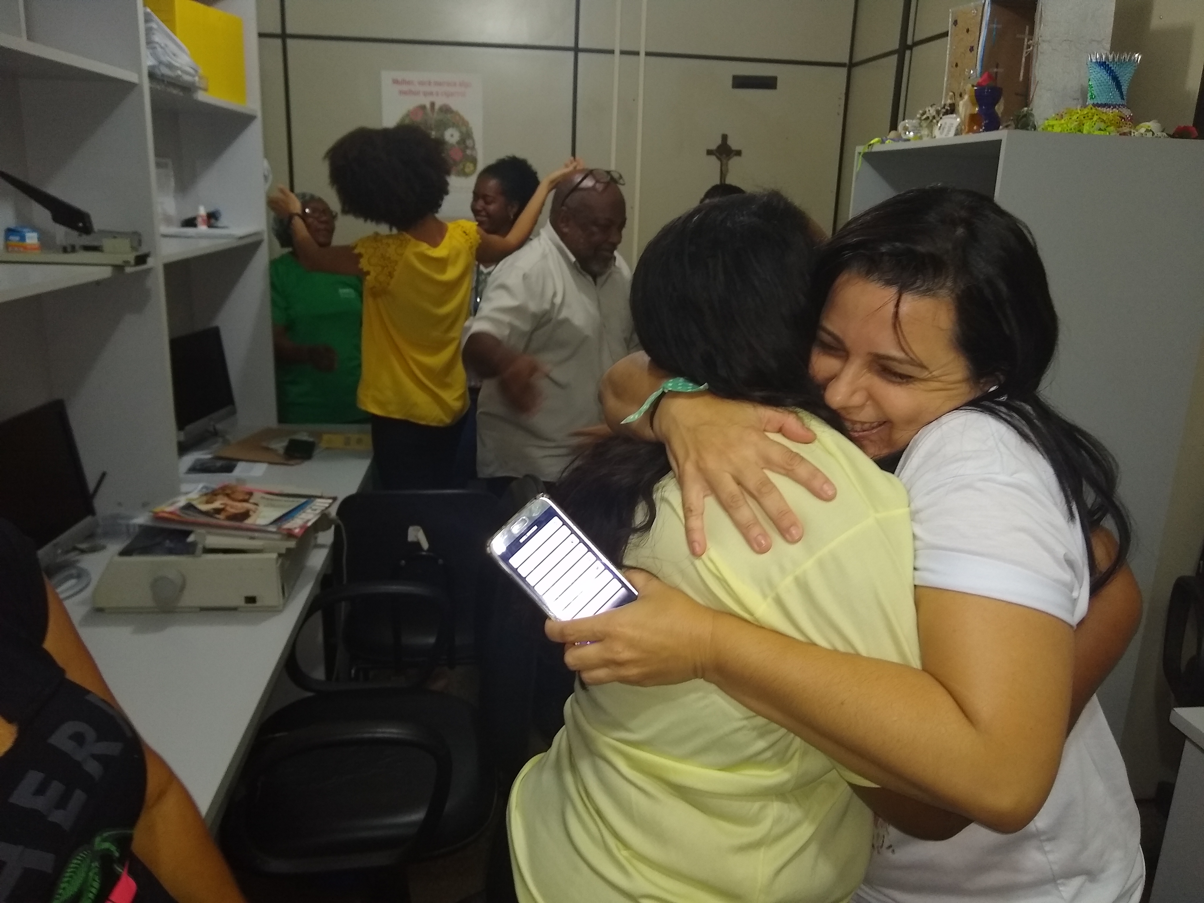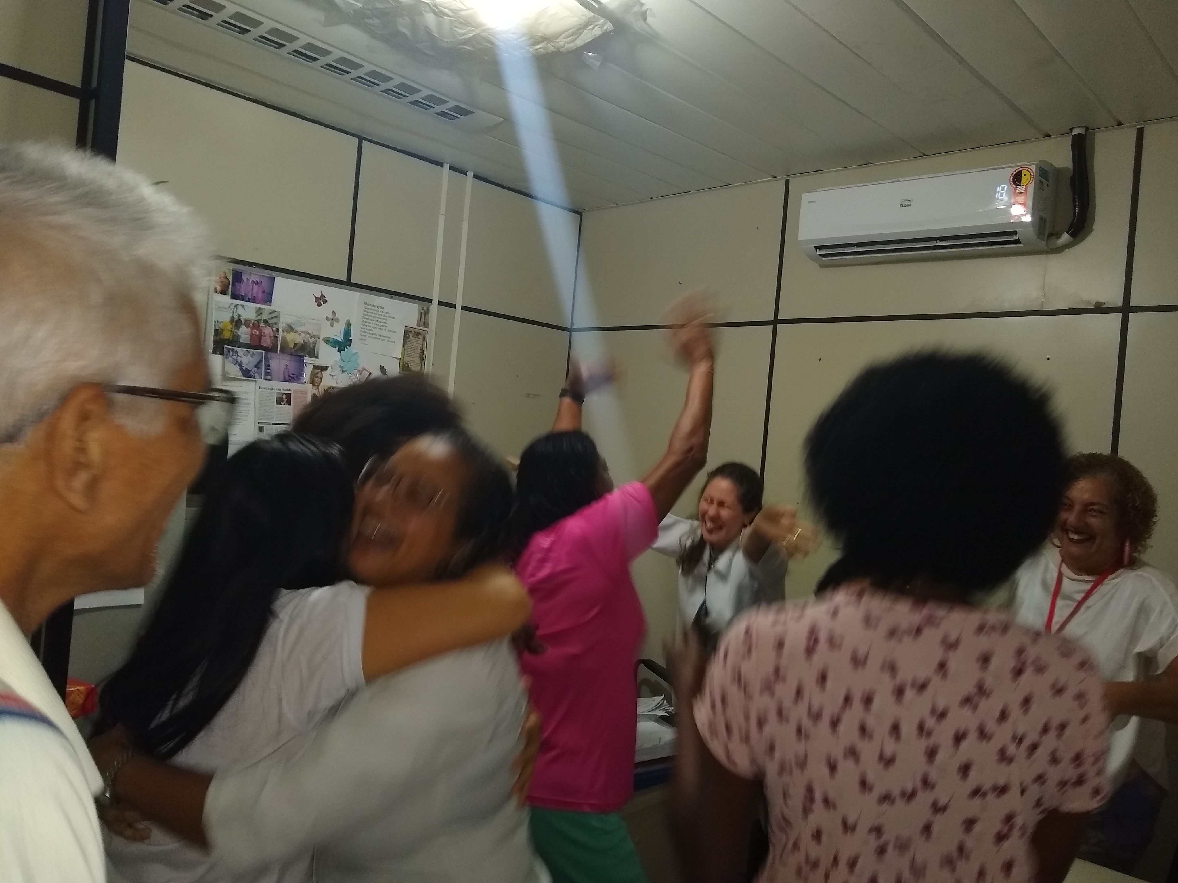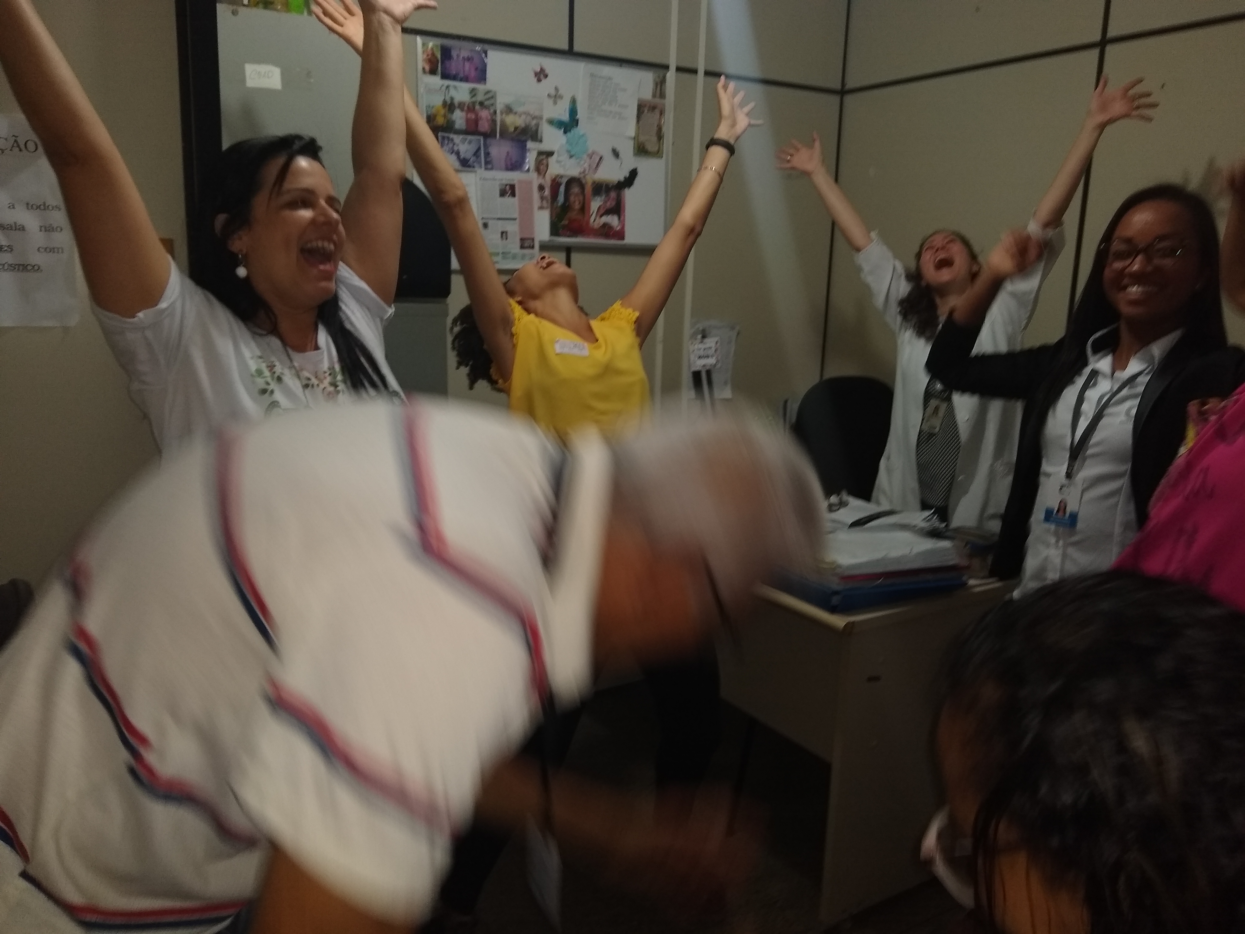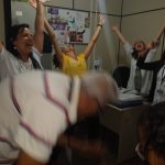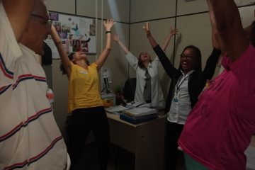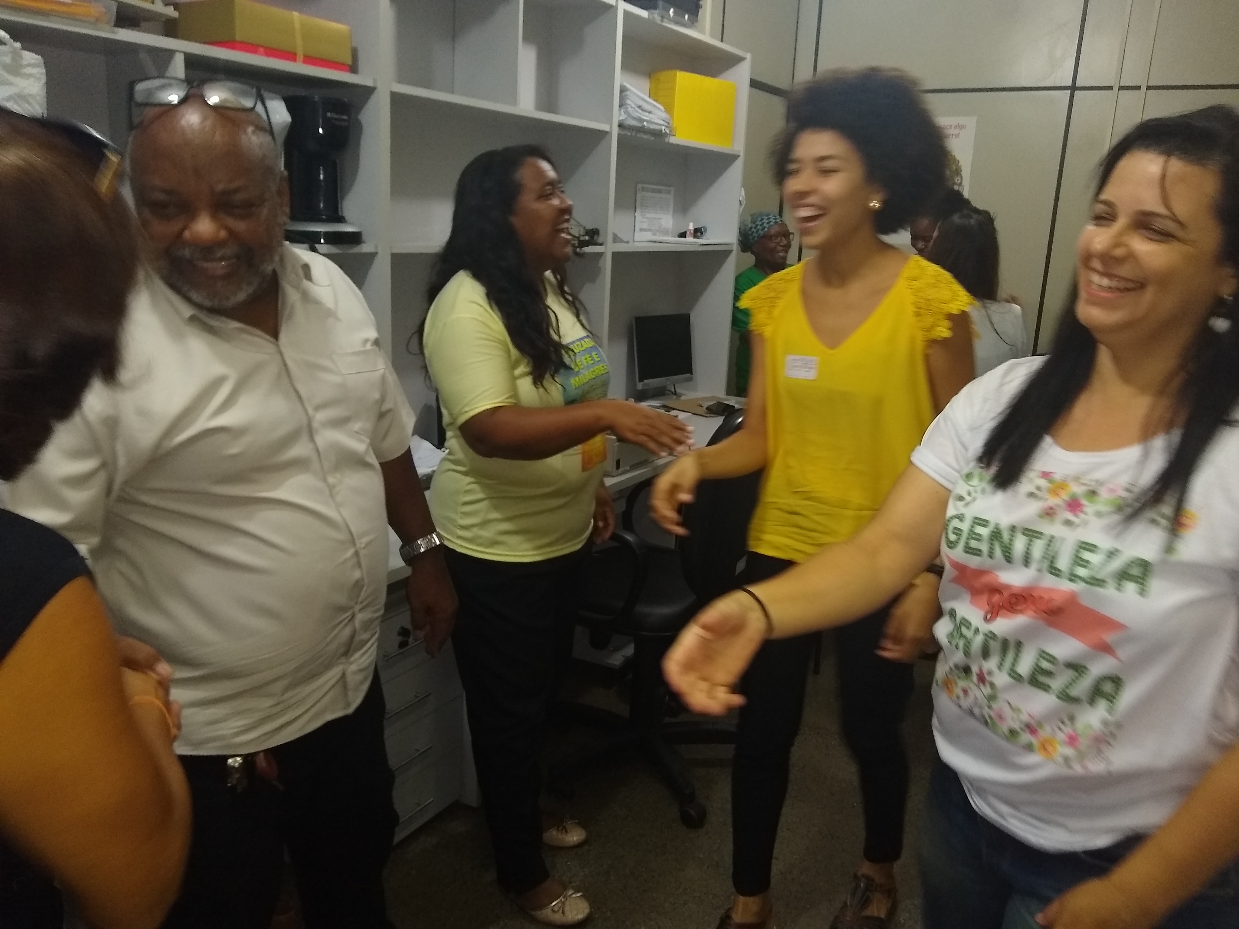 Diante dos benefícios do riso para a saúde, o Serviço Integrado de Atenção à Saúde do Trabalhador (Siast), do Centro de Diabetes e Endocrinologia da Bahia (Cedeba) vem oferecendo oficina de Yoga do Riso uma vez por mês para os servidores. Hoje pela manhã, com a ação itinerante do Projeto Gentileza gera Gentileza -,iniciado em outubro – para divulgar o Sarau da Gentileza que acontece no dia 27 de junho, a líder do Riso, Helena Matos, esteve nos diversos setores praticando exercícios do Yoga do Riso. São situações criadas, como, por exemplo, reencontrar um amigo depois de muitos anos. O abraço forte, o largo e gostoso riso.