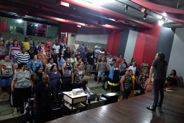 A fisioterapeuta movimentou os participantes com sessão de alongamento, motivando-os para a palestra. Depois perguntou quem fazia exercício físico. Poucos responderam afirmativamente, gancho para Lorena enfatizar a importância dessa prática para a saúde. Ela explicou a diferença de atividade física (todos os movimentos que fazemos na nossa rotina) e exercício físico, que deve ter horário e dose certas porque funciona como remédio. No caso da obesidade – explicou – além da redução de medidas e do peso, diminui a ansiedade (pela liberação de endorfina que dá a sensação de bem-estar), a pressão arterial, melhora a respiração, a qualidade do sono. Também assegura mais produção e qualidade do osso, ganho de força no músculo e melhor tolerância ao açúcar.
