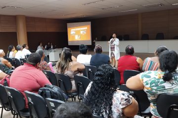 Na sessão, no auditório da Escola de Saúde Pública Professor Jorge Novis, o grupo – predominante feminino – teve uma “entrada” sobre os caminhos para alimentação saudável, que durante o tratamento tem “menu” completo com o Plano Alimentar (individual) e várias palestras.