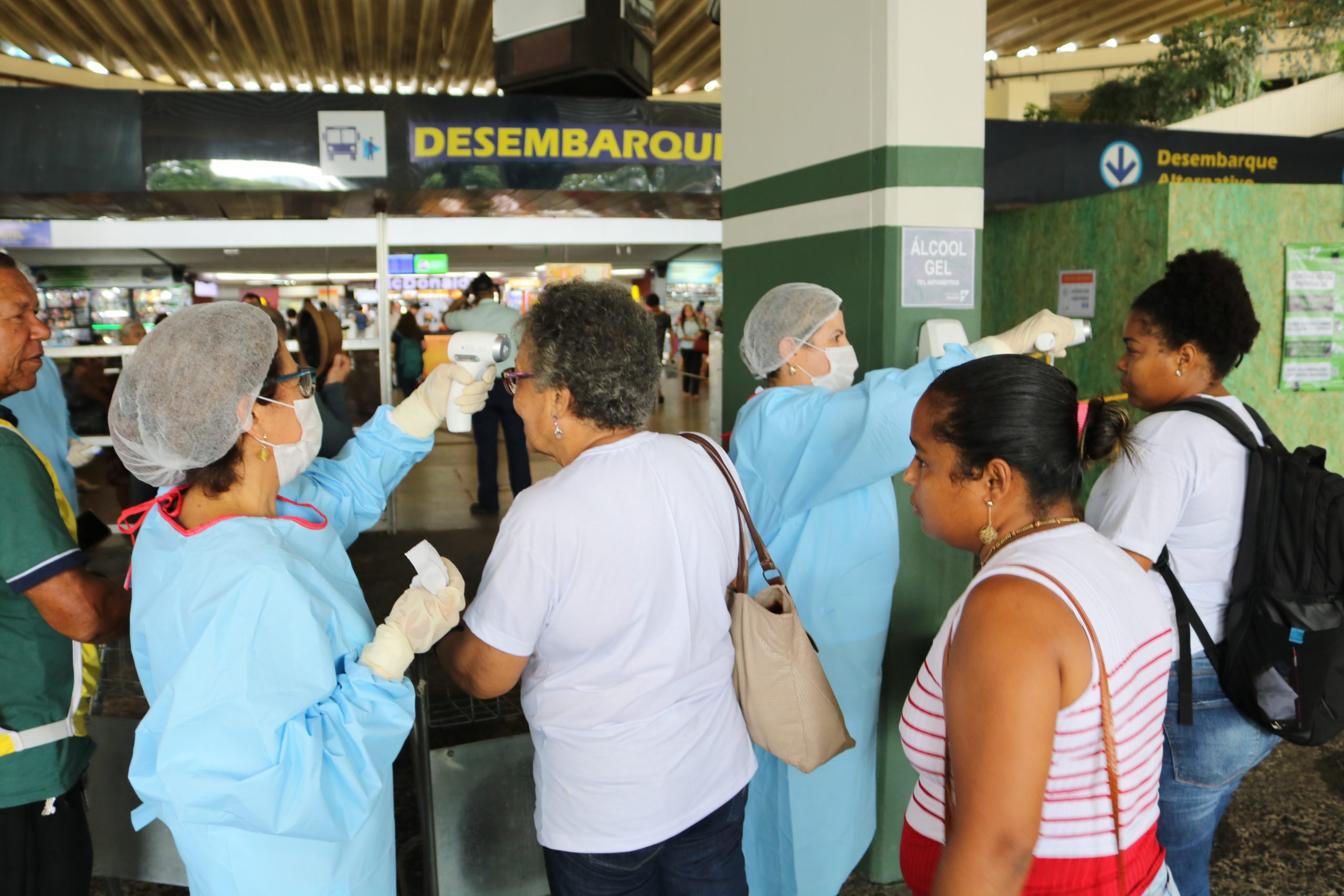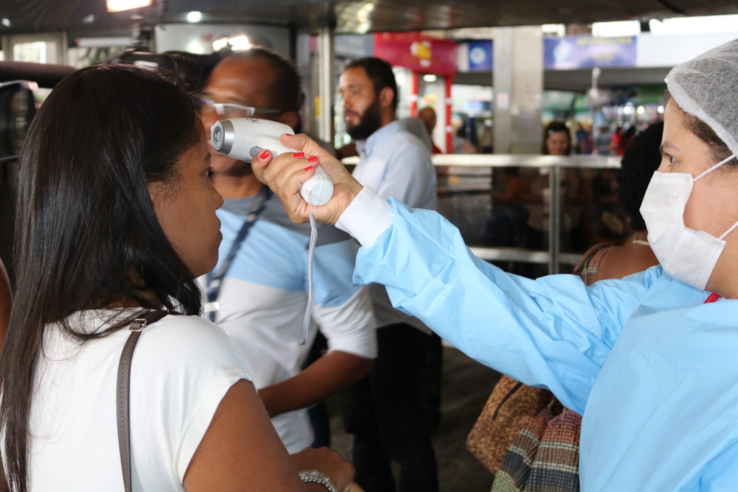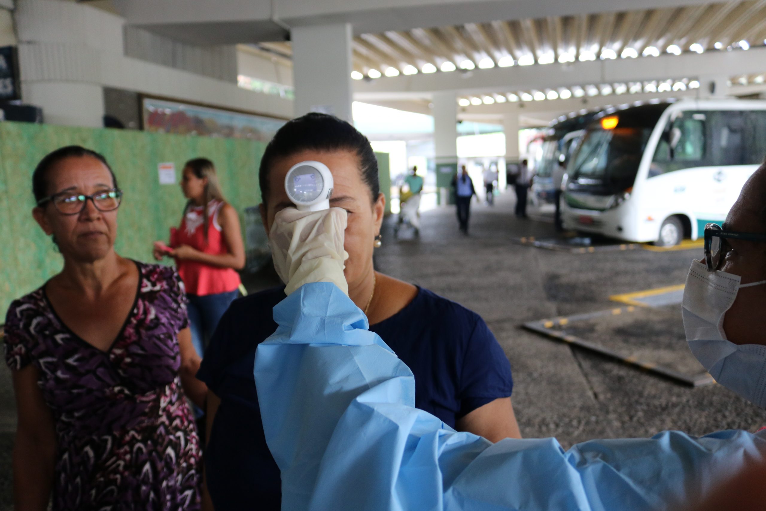 Medição de temperatura e informações sobre prevenção são realizadas na rodoviária de Salvador