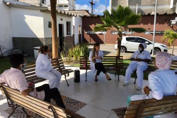 Em um espaço aberto de frente para o mar – em área reservada do próprio hospital -, os encontros têm como proposta levar leveza e conscientização aos profissionais.