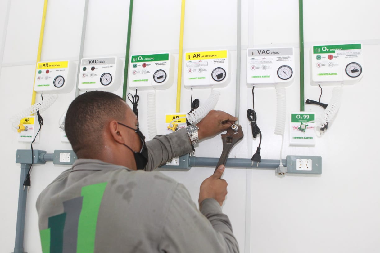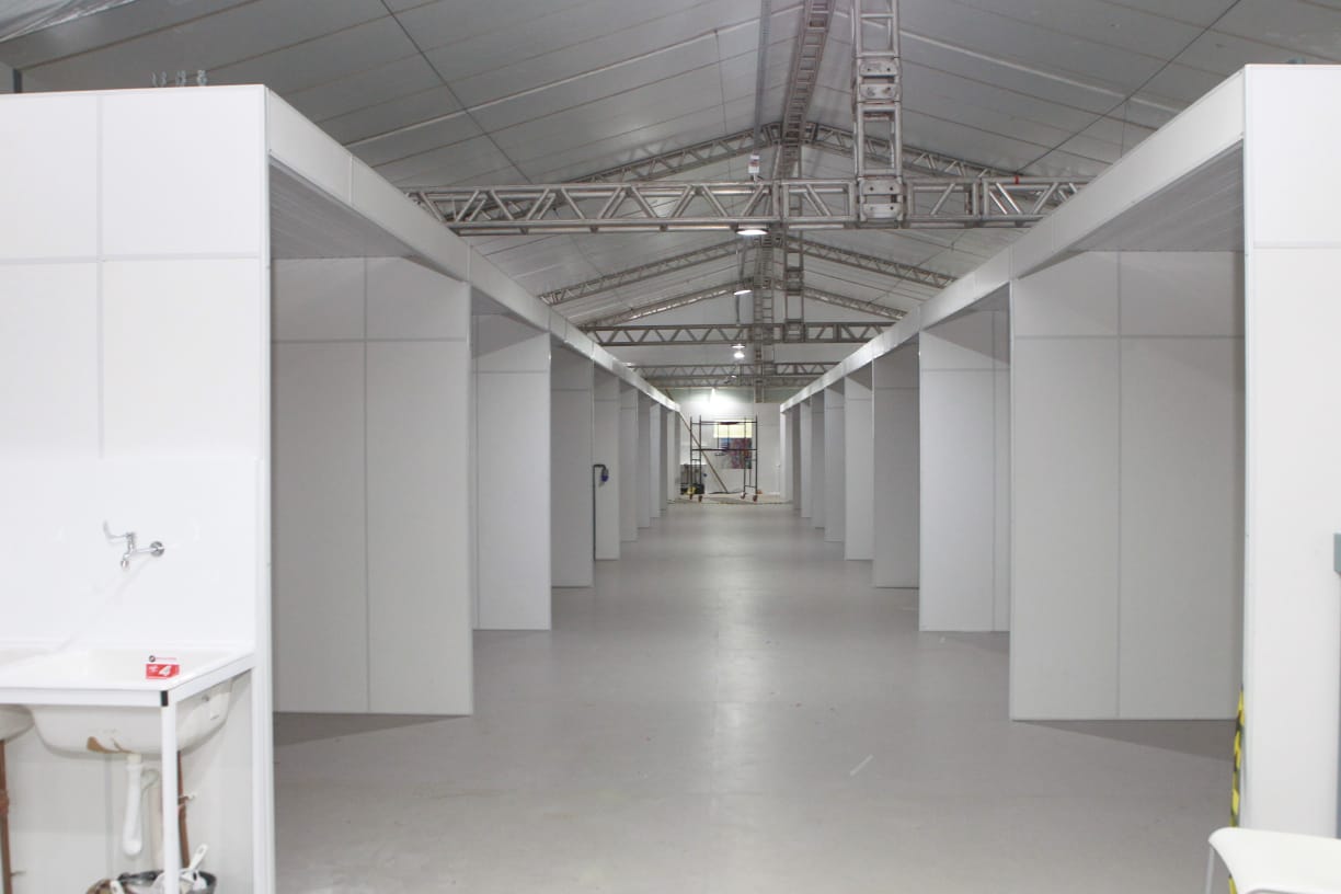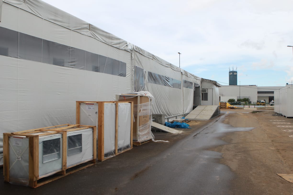 Na área externa do HS está em fase de finalização a tenda do hospital de campanha que irá abrigar 60 leitos de UTI. A obra será finalizada na segunda-feira feira (4) e ficará aguardando a instalação dos equipamentos. A previsão é de que a unidade comece a funcionar em até duas semanas.
