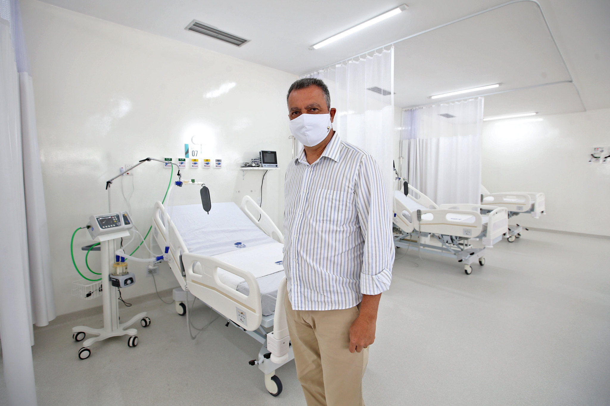 O governador Rui Costa, acompanhado do secretário da Saúde do Estado, Fábio Vilas-Boas, entregou dez novos leitos de Unidade de Terapia Intensiva (UTI) para o Hospital Municipal de Paulo Afonso, na manhã desta segunda-feira (29). O Governo do Estado investiu R$ 3,7 milhões na implantação dos leitos e mais R$ 1,5 milhão na instalação de um tomógrafo que passa a funcionar no hospital já a partir de hoje.