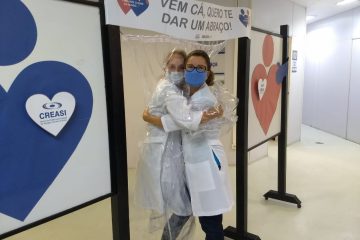 Arrancando sorrisos e lágrimas, a cortina do abraço fez os trabalhadores e trabalhadoras compartilharem algo que não faziam há meses; e foi uma emoção! “Poucos momentos que vivenciei ao longo dos meus quase 26 anos de SUS, me deixaram tão emocionada. O abraço representa conforto, gratidão e amor. Esse período tem nos demandado novos desafios e foi muito importante poder abraçar novamente pessoas queridas”, disse Delúcia Alves, enfermeira que atuou na vacinação dos trabalhadores da saúde e, atualmente, está assumindo as suas atividades na Coordenação de Ambulatórios Especializados e desenvolvendo atividades para o Centro de Testagem.