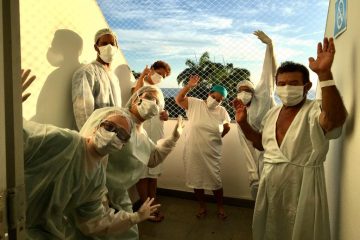 A banda, que ainda não foi batizada, vai tocar na balaustrada interna do Hospital Espanhol com vista para a Baía de Todos os Santos e Farol da Barra. No repertório, MPB. Nas mãos dos músicos que também atuam como heróis da saúde: um violão, uma guitarra, um carron e dois microfones. Na plateia, outros heróis da saúde que deixaram suas capas de EPI penduradas por alguns minutos, para respirar o ar puro, apreciar o mar, sentir a brisa sob mangueiras, dançar um pouco e prestigiar os colegas, gratos e cheios de expectativas por uma vivência como esta, num Hospital de Campanha.