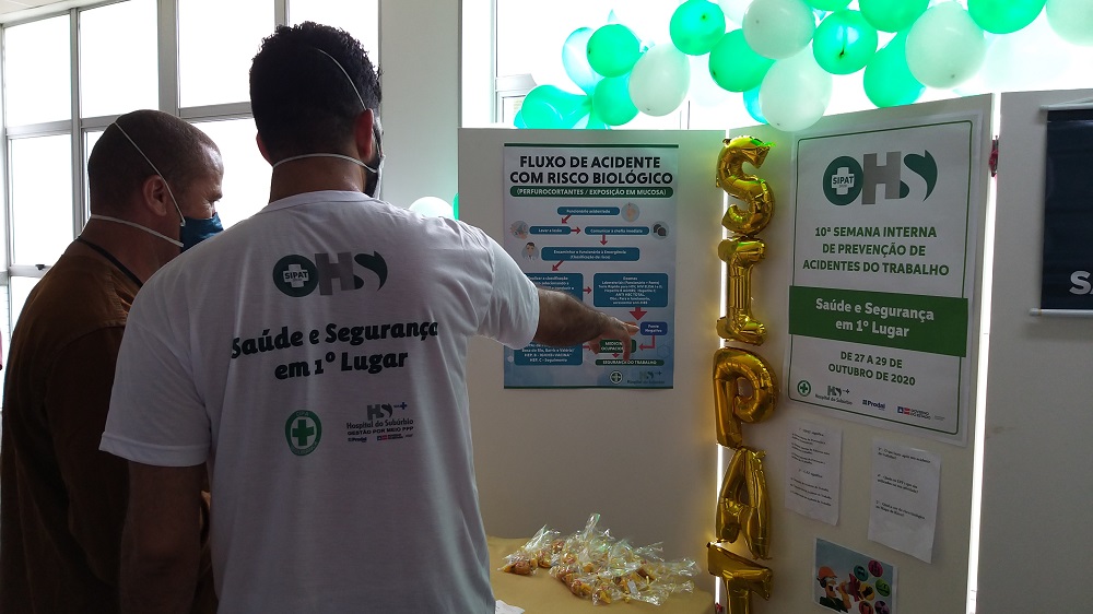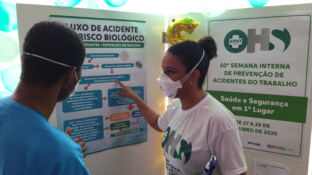 O Hospital do Subúrbio (HS) realiza até a próxima quinta-feira, 29 de outubro, a 10ª Semana Interna de Prevenção de Acidentes do Trabalho (SIPAT). A programação conta com temas diversos que abordam a saúde do trabalhador de forma integral, considerando o seu bem-estar físico e mental. Para isso, a equipe de Segurança do Trabalho realiza as atividades da SIPAT com a colaboração do Serviço de Nutrição, Psicologia, Gerência de Pessoas, Medicina do Trabalho e Bombeiros.