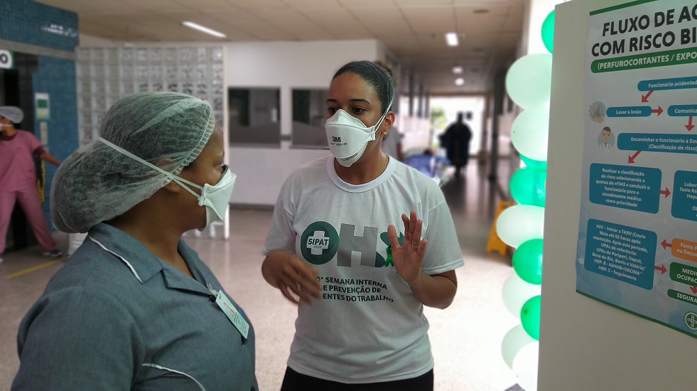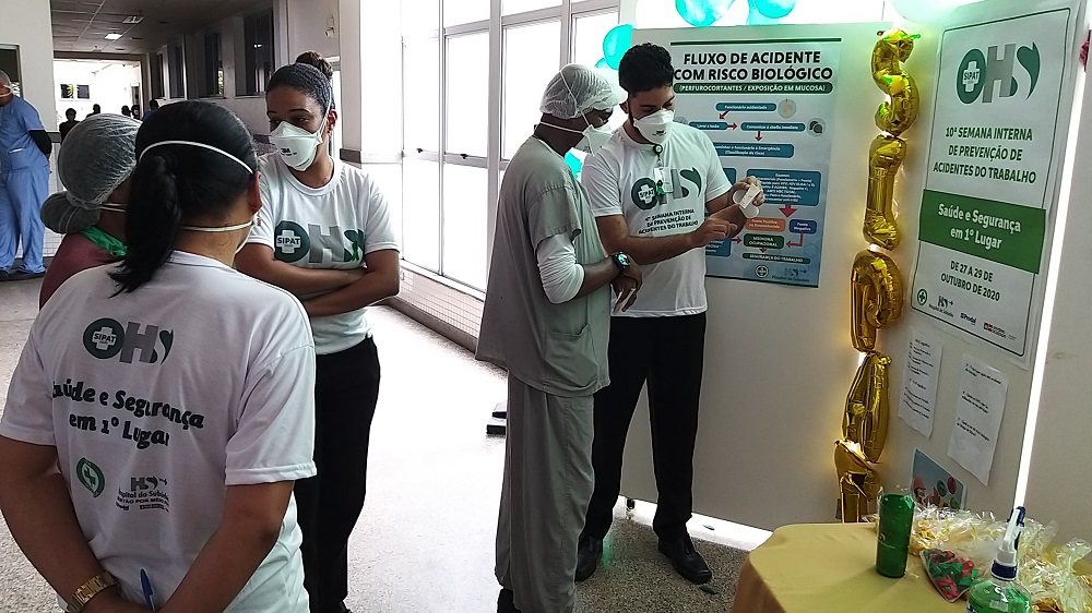 “A intenção é conscientizar o colaborador sobre o cuidado na execução da atividade laboral. Esta é uma semana destinada a ações de divulgação em prol de atitudes de prevenção de acidentes”, explica o engenheiro de Segurança do Trabalho Marco Ribeiro. Neste ano de 2020, a média registrada foi de 4 acidentes por mês, número considerado baixo no universo de mais de 2 mil profissionais que atuam no hospital. O engenheiro destaca que grande parte dos acidentes ocorrem em virtude da desatenção ou descuido no manuseio e descarte de materiais perfurocortantes. “Lidar com perfurocortantes requer atenção especial dos colaboradores”, reforça Marco.
