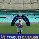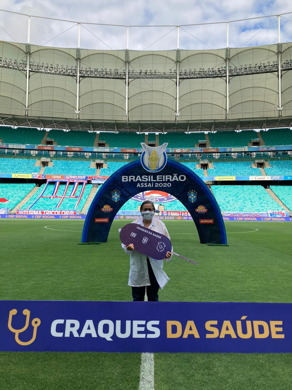 A CBF está premiando os hospitais no país, que estão trabalhando com atendimento aos pacientes da Covid-19. A diretora geral da unidade, Cristiana França, recebeu as chaves da ambulância das mãos dos capitães do Bahia (Gregory) e do Internacional (Rodrigo Dourado).