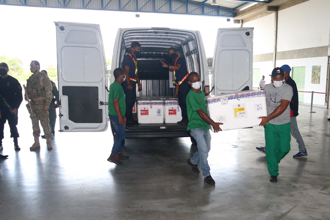 Um novo lote de vacinas contra a Covid-19 chegou à Bahia às 10h40 deste domingo (24). Desta vez, 119.500 doses do imunizante desenvolvido pela universidade de Oxford, em parceria com a biofarmacêutica AstraZeneca, desembarcaram no aeroporto internacional de Salvador, de onde seguiram para a sede do Grupamento Aéreo da Polícia Militar (Graer). A distribuição para as cidades do interior terá início a partir das 14h de hoje.
