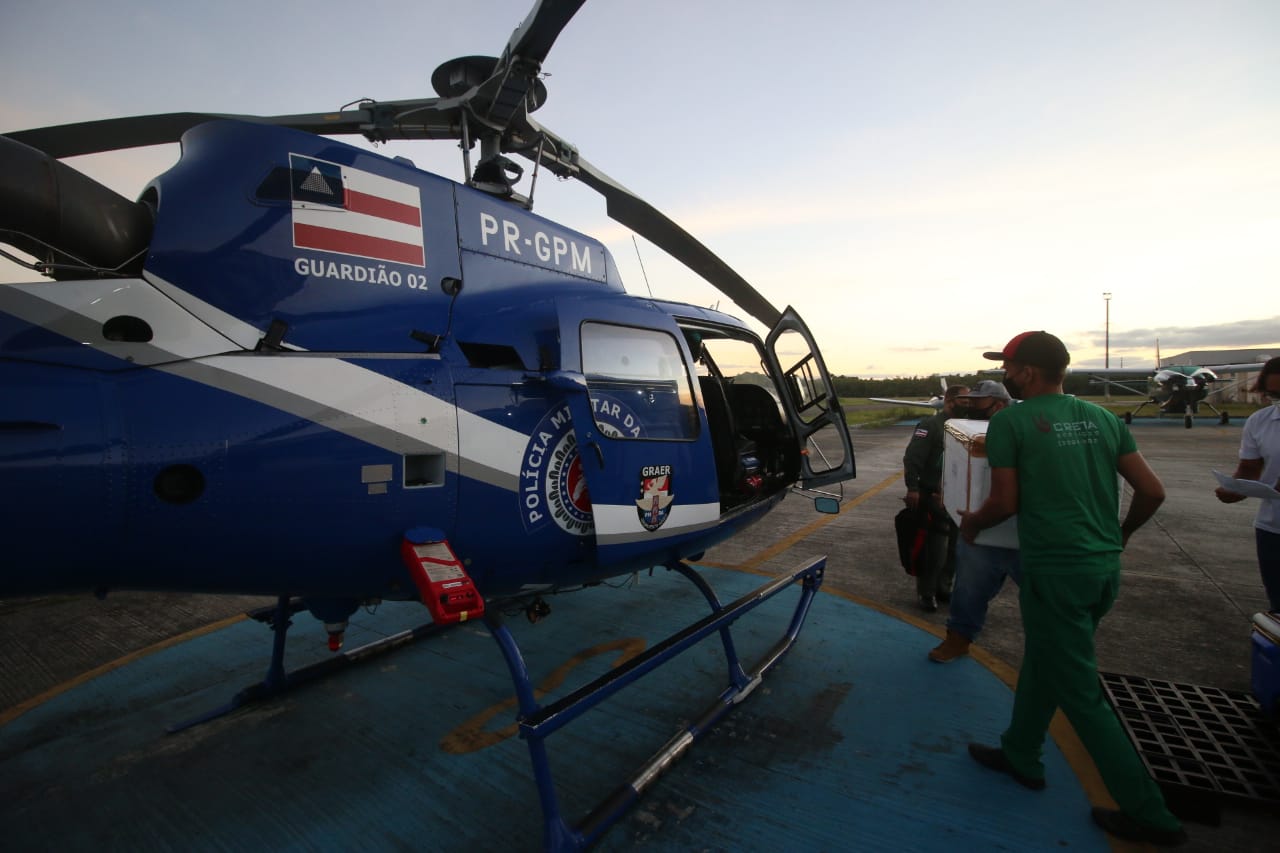 Helicópteros e aviões da Secretaria da Segurança Pública e da Casa Militar do Governador (CMG) iniciaram, às 5h30 desta quarta-feira (10), o transporte aéreo de mais 177 mil vacinas contra a covid-19. Os imunizantes foram encaminhados para 20 cidades da Região Metropolitana de Salvador (RMS) e do interior do estado.