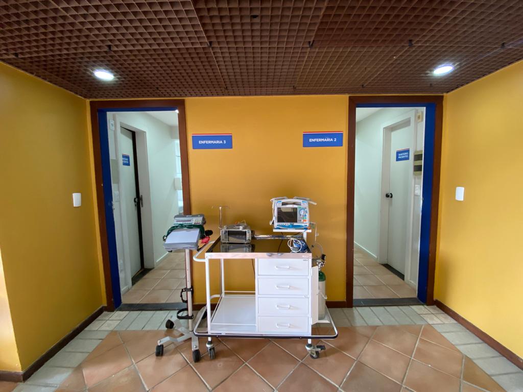 O Hospital Riverside era um hotel que foi adquirido pelo Governo da Bahia em 2019 e passou por adequações estruturais para ser transformado em uma unidade hospitalar.