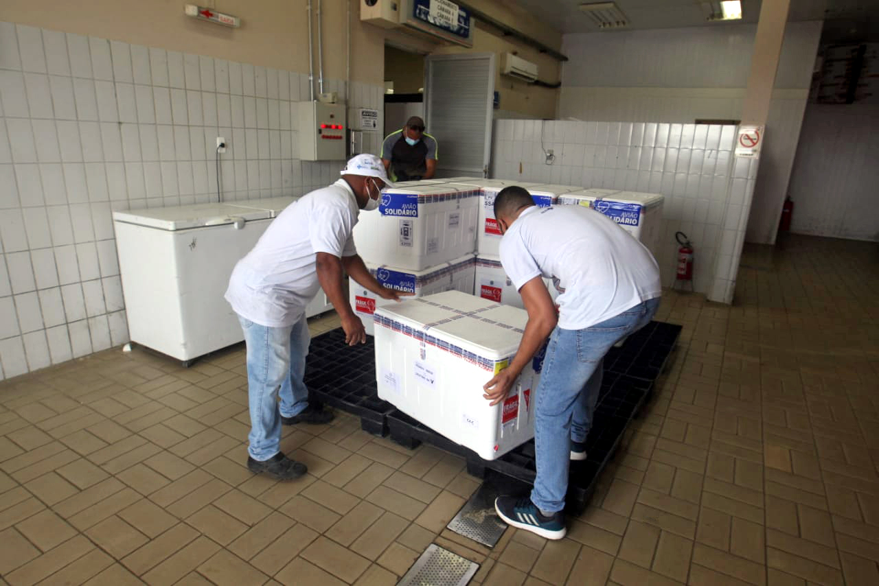Uma nova remessa com 244.200 vacinas contra a Covid-19 chegou nesta quinta-feira (08) à Bahia. Todas as doses são da Astrazeneca/Oxford. O voo trazendo os imunizantes pousou no aeroporto de Salvador por volta das 9h45. Todo o carregamento será encaminhado para Central Estadual de Armazenamento e Distribuição de Imunobiológicos – CEADI da Secretaria da Saúde do Estado (Sesab), de onde deve ser expedido para os municípios.
