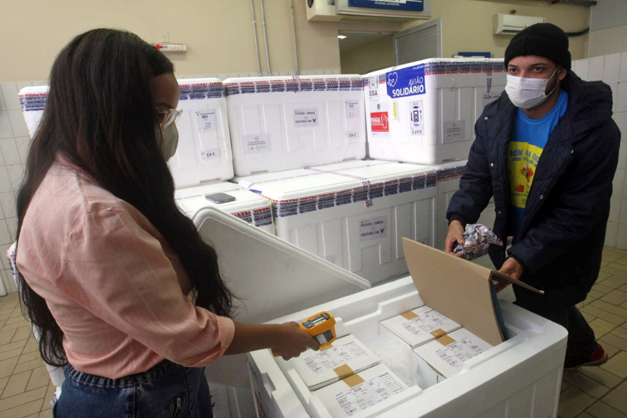 Com o novo lote, a Bahia totaliza 4.924.860 doses de vacinas recebidas desde o dia 18 de janeiro, data de chegada da primeira remessa.