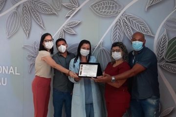 Reconhecido pelo trabalho e desempenho de seus profissionais na assistência aos pacientes acometidos pela Covid-19, o Hospital Regional Costa do Cacau (HRCC), em Ilhéus, recebeu uma placa em homenagem aos serviços prestados pelo combate à pandemia do novo coronavírus no interior da Bahia. A condecoração foi entregue pela Câmara de Vereadores de Ilhéus, representada pelo vereador Fabrício Nascimento, vice-presidente da casa legislativa, na última terça-feira (04).