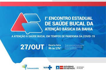 Promovido pela Diretoria da Atenção Básica, por meio do Telessaúde Bahia, o I Encontro Estadual de Saúde Bucal da Atenção Básica: a atenção a saúde bucal em tempos de pandemia da Covid-19, será realizado no dia 27 de outubro, das 9h às 17h.