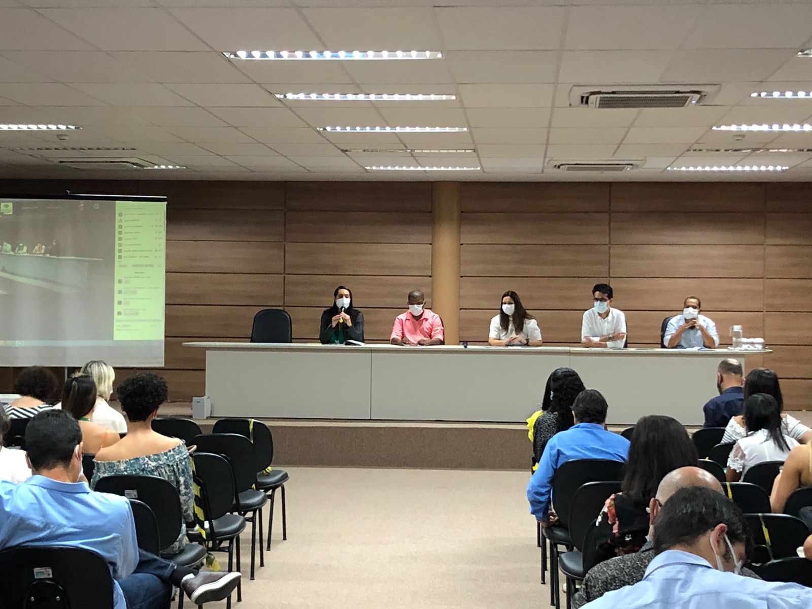A abertura do evento contou com a participação da Superintendente de Recursos Humanos da Saúde, Janaína Peralta, do Superintendente de Atenção Integral à Saúde, Igor Lobão, do Diretor de Gestão do Trabalho na Saúde, Bruno Guimarães, do Presidente do Conselho Estadual de Saúde, Marcos Sampaio, da Coordenadora de Humanização do Trabalho na Saúde, Érica Bowes.