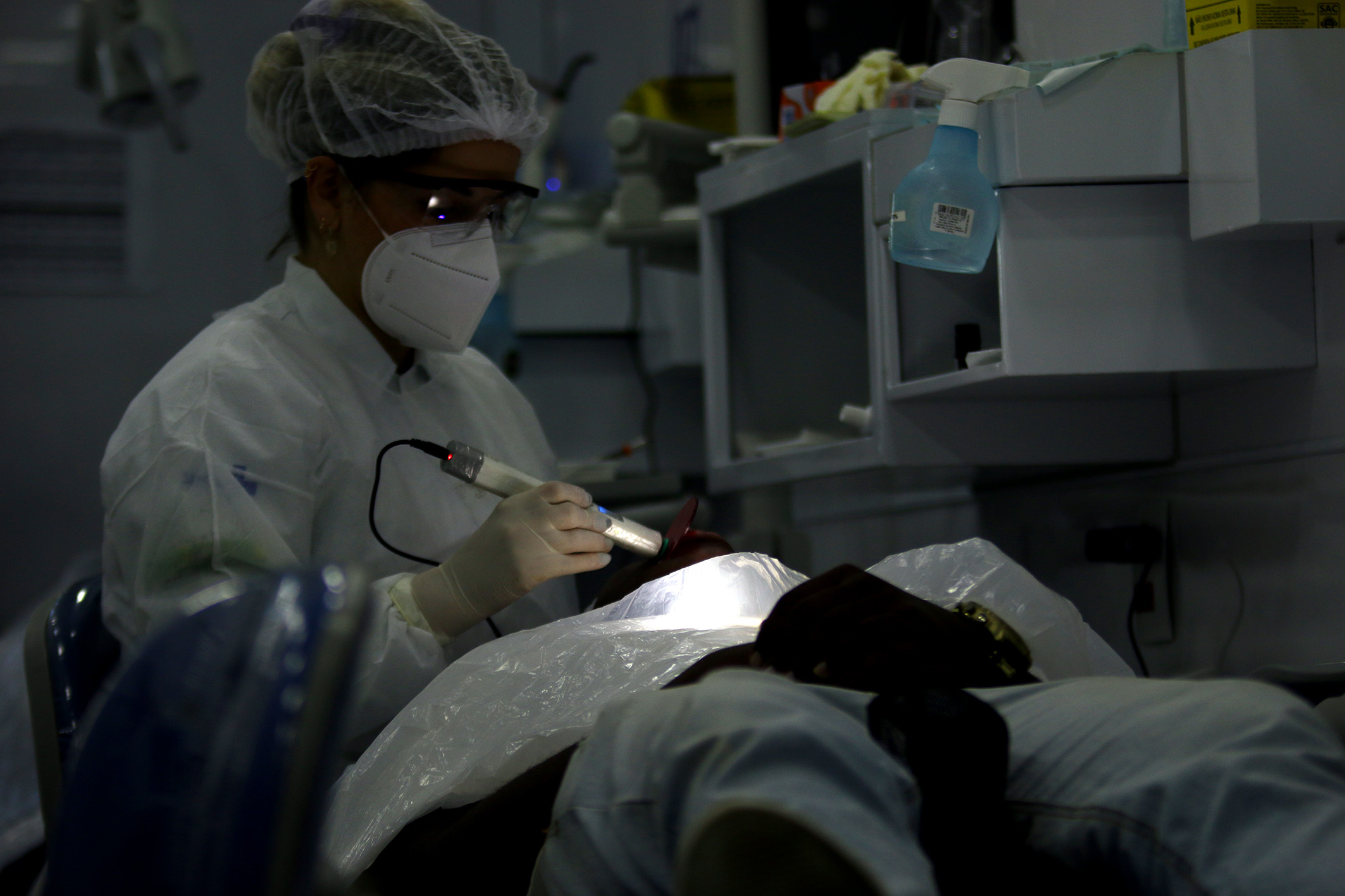 Emília Soares foi uma das que aproveitaram o domingo para cuidar da saúde bucal. Ela conta que há cerca de oito meses tem sofrido com um incômodo no dente. “Já tinha tentando atendimento em alguns postos, mas não havia conseguido, então busquei o atendimento de um dentista aqui. Na sexta-feira, fiz mamografia aqui na Feira Cidadã e como vi que o atendimento foi bom, retornei”, conta ela, que ainda levou as duas filhas para também serem atendidas na unidade móvel de odontologia.