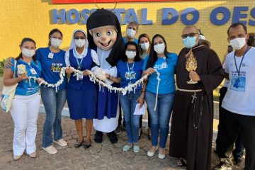 Com um cortejo de luz, amor e fé, pacientes, acompanhantes e colaboradores do Hospital do Oeste (HO) celebraram a chegada da Chama do Amor na unidade, na última segunda-feira (9). A iniciativa, em memória dos 30 anos de falecimento do Anjo Bom do Brasil, foi marcada por muita emoção no complexo hospitalar administrado pelas Obras Sociais Irmã Dulce (OSID) no município de Barreiras. Um dos momentos mais comoventes foi quando o reitor do Santuário Santa Dulce dos Pobres, frei Giovanni Messias, passou conduzindo a imagem da Santa dos Pobres.