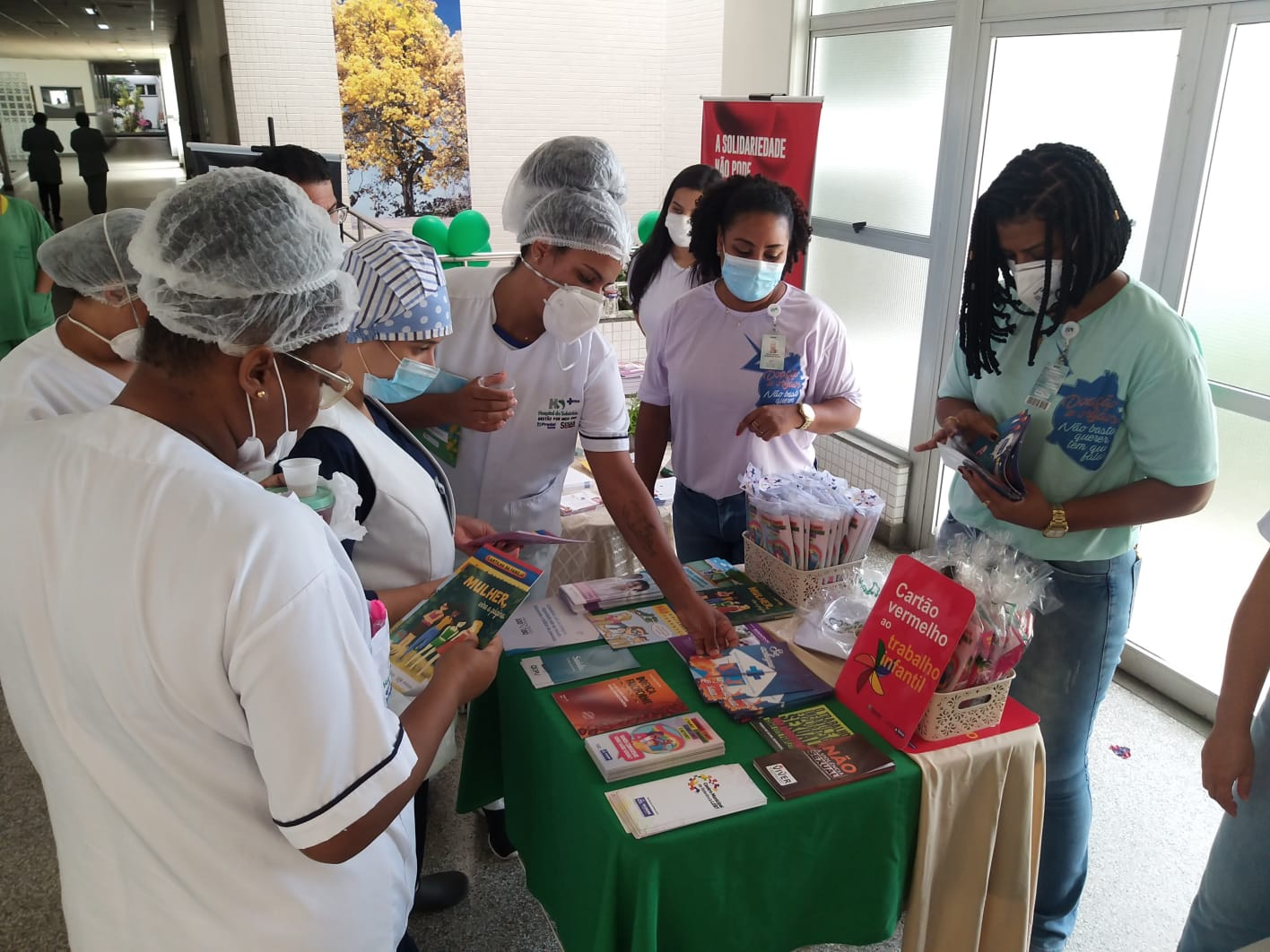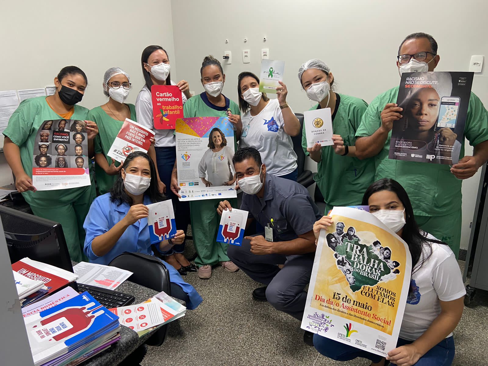Como parte das comemorações de maio, também foi realizada ação para homenagear o Dia do Assistente Social. Durante o evento, ocorrido no dia 19, as assistentes sociais do HS orientaram profissionais que se interessaram em aprender sobre direitos da mulher, do idoso, da criança e adolescente, LGBTQIA+, além de aprofundar o conhecimento em questões envolvendo o combate ao racismo e a luta contra a AIDS e Infecções Sexualmente Transmissíveis (ISTs).