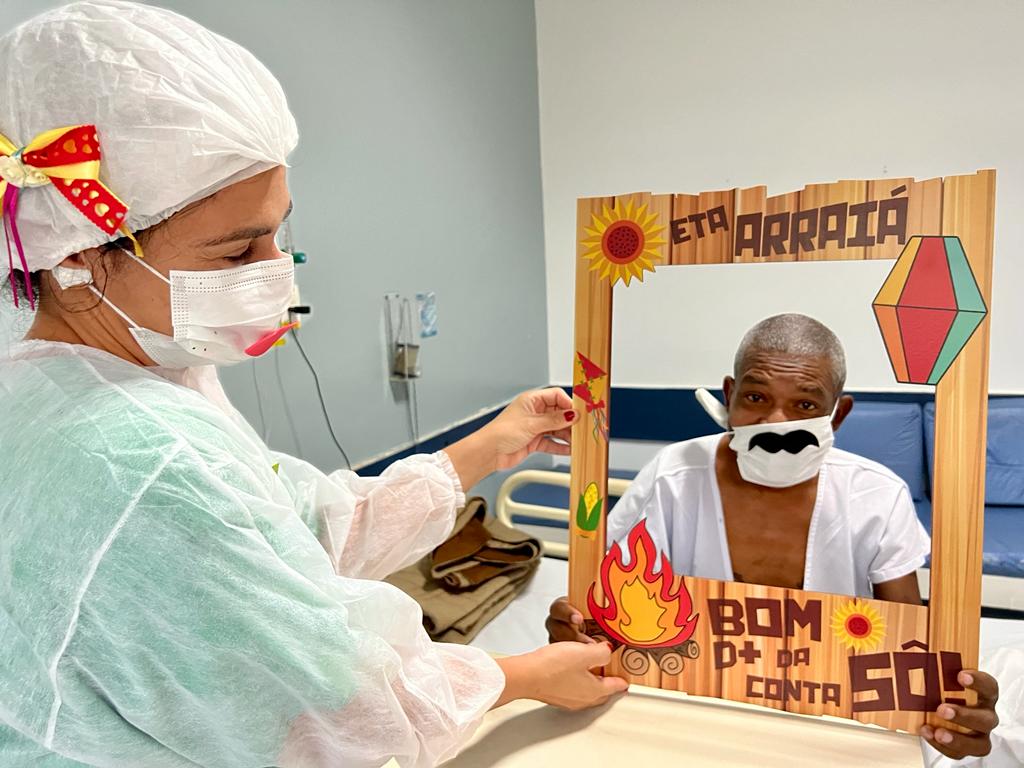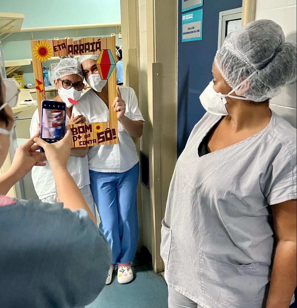 No Nordeste, São João é festa magna. Para quem é do interior dos estados nordestinos, esta é a melhor época do ano. E para quem é do interior, ou até mesmo da capital, e está longe de casa e da família, em isolamento, em internação no Hospital Espanhol para tratamento da Covid?… Sabendo que depois de dois anos sem festa, a programação voltou com todo o gás. É duro. É triste. Pensando neste cenário emocional, os profissionais do HE realizaram, na semana do São João, o “Forró itinerante do EspanhÓ”.