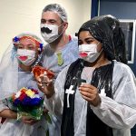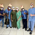 A música é ponto forte da humanização do HE e do forró também. Mas os personagens juninos caracterizados também fazem parte do grupo. Tem noivo, noiva e padre – para o casamento na roça, tem rei e rainha do milho, tem capas e máscaras cirúrgicas customizadas e tem paçoquinha para adoçar o São João no hospital de quem pode comer um docinho.
