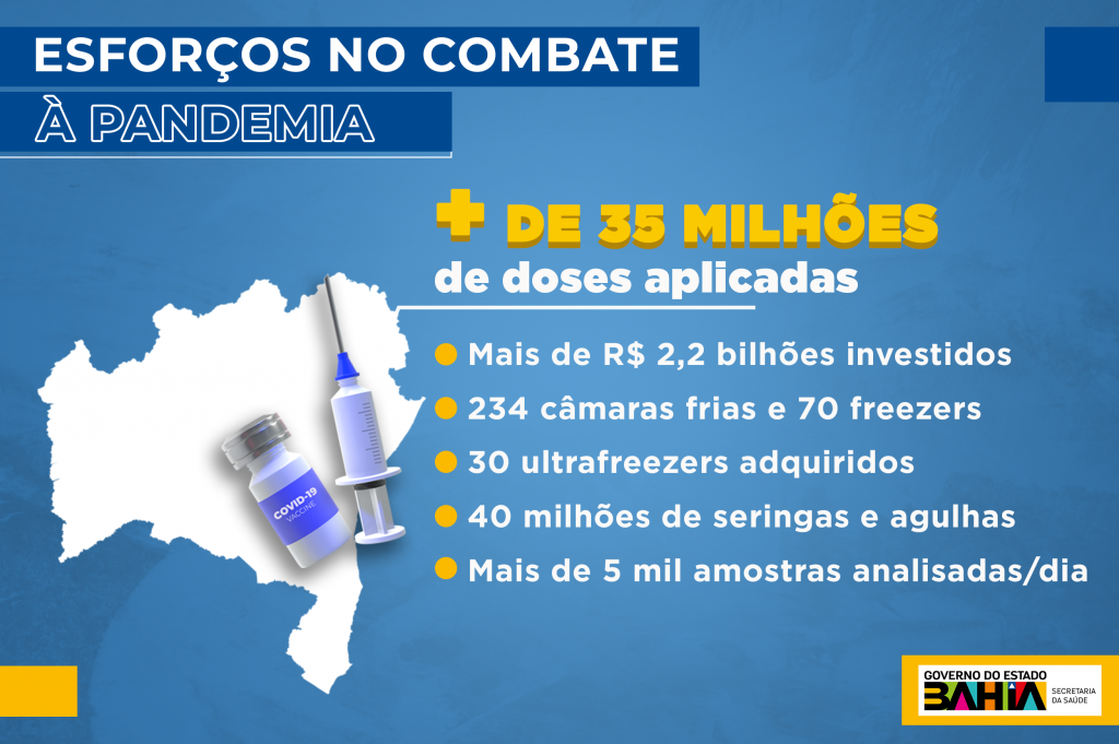 “Investimos mais de R$ 2,2 bilhões durante a pandemia para garantir a estrutura necessária para salvar a vida de milhares de baianos, com ampliação e reforma de unidades de saúde, instalação de um hospital de campanha na Arena Fonte Nova, além do Hospital Metropolitano. Isso tudo exemplifica a grande reunião de esforços em prol de salvar vidas. Hoje, não temos dúvidas sobre a eficácia da vacinação nesse controle. Desde quando as doses começaram a ser aplicadas, as taxas de internações e mortes decorrentes de complicações da Covid-19 caíram de forma considerável”, analisa.