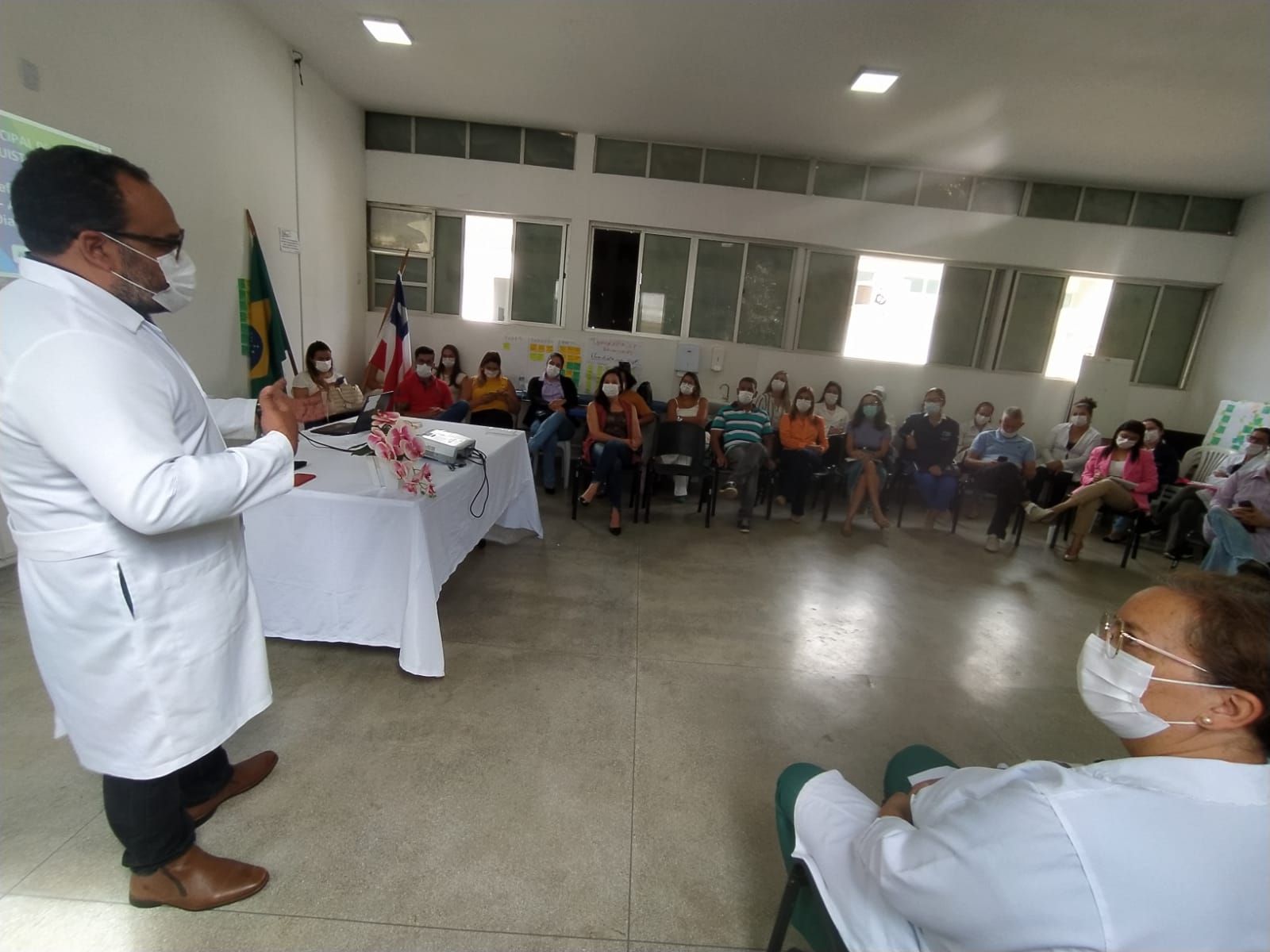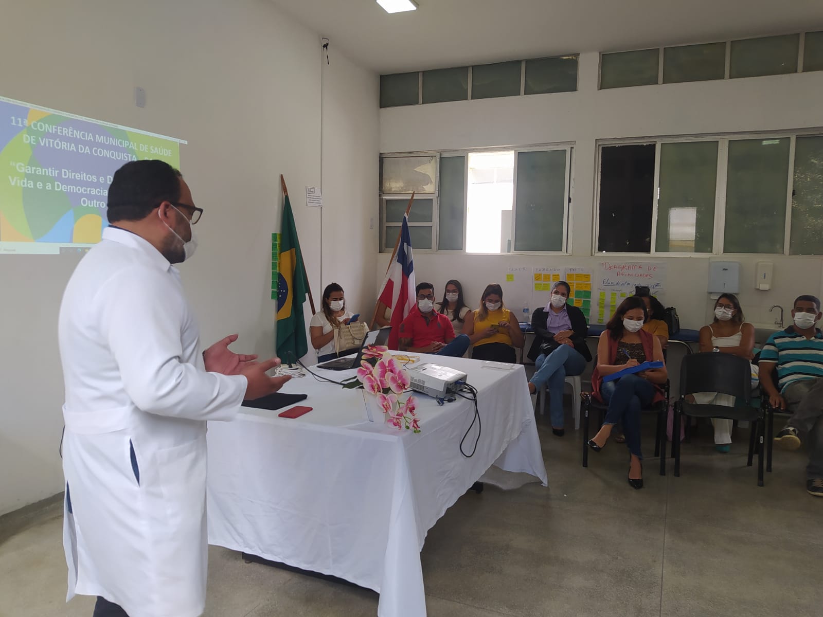 Durante a abertura do evento, Geovani Moreno, médico responsável pela direção geral do Complexo Hospitalar de Vitória da Conquista (CHVC), agradeceu pela participação de todos e destacou a importância das conferências de saúde. Ele recordou que essas conferências antecedem a criação oficial do próprio Sistema Único de Saúde (SUS) e também da Constituição de 1988, com o objetivo justamente de garantir a participação social dentro do serviço de saúde no Brasil.