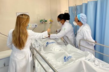 “Hoje abordei com a equipe a passagem da sonda nasoenteral, a qual consiste em uma sonda colocada pelo nariz até o estômago ou intestino. A nutrição via sonda nasoenteral é realizada quando o paciente não consegue deglutir. Ele tem um suporte nutricional de extrema importância e é conhecido como fator definitivo na recuperação de doentes, devido ao aumento da prevalência de doenças crônicas na população, especialmente nos idosos, pois permite o aporte de nutrientes. O procedimento é simples, mas os profissionais devem estar capacitados sobre como funciona o procedimento, daí a importância de nossos treinamentos”, garantiu.