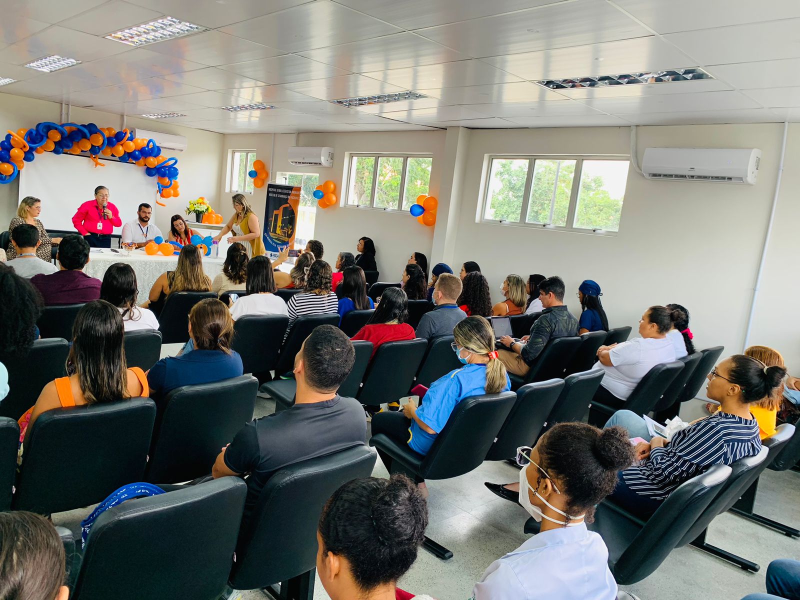 Após a discussão, houve um coffee break e, em seguida, a segunda mesa redonda, com foco no compartilhamento de experiências bem-sucedidas ao longo dos dez anos de implantação do Núcleo de Segurança do Paciente (NSP) do hospital. A mesa foi moderada por Mara Larissa Vasconcelos e teve como palestrantes Gisa Conceição Moreira Rios, Lucas Gouveia de Carvalho Teixeira, Karla Souza Santos Rios, Bruno Alencar e Itayany de Santana Jesus Souza, coordenadora da equipe de segurança do paciente do hospital.