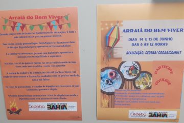 Os cartazes, já espalhados pelo Cedeba, destacam o propósito educativo da ação. Depois, virá a decoração com motivos juninos e muitas cores. “A turma da Codar e da Comult/no Arraiá do Bem Viver/ vai ensinar como comer e dançar/ os cuidados com os pés/na verdade, nada vai faltar/ Os riscos de queimaduras e de hipoglicemia/ mas quem tá bem informado garante a alegria”. E, como destaca a coordenadora da Codar Graça Velanes, “o Arraiá é mais uma atividade da Caravana da Saúde (atividade de rotina com reforço de informações de educação em saúde nas salas de espera). Em datas especiais, fazemos caravanas temáticas. E os festejos juninos exigem um olhar especial, porque acontecem em todo o Nordeste, principalmente nas cidades do interior”.