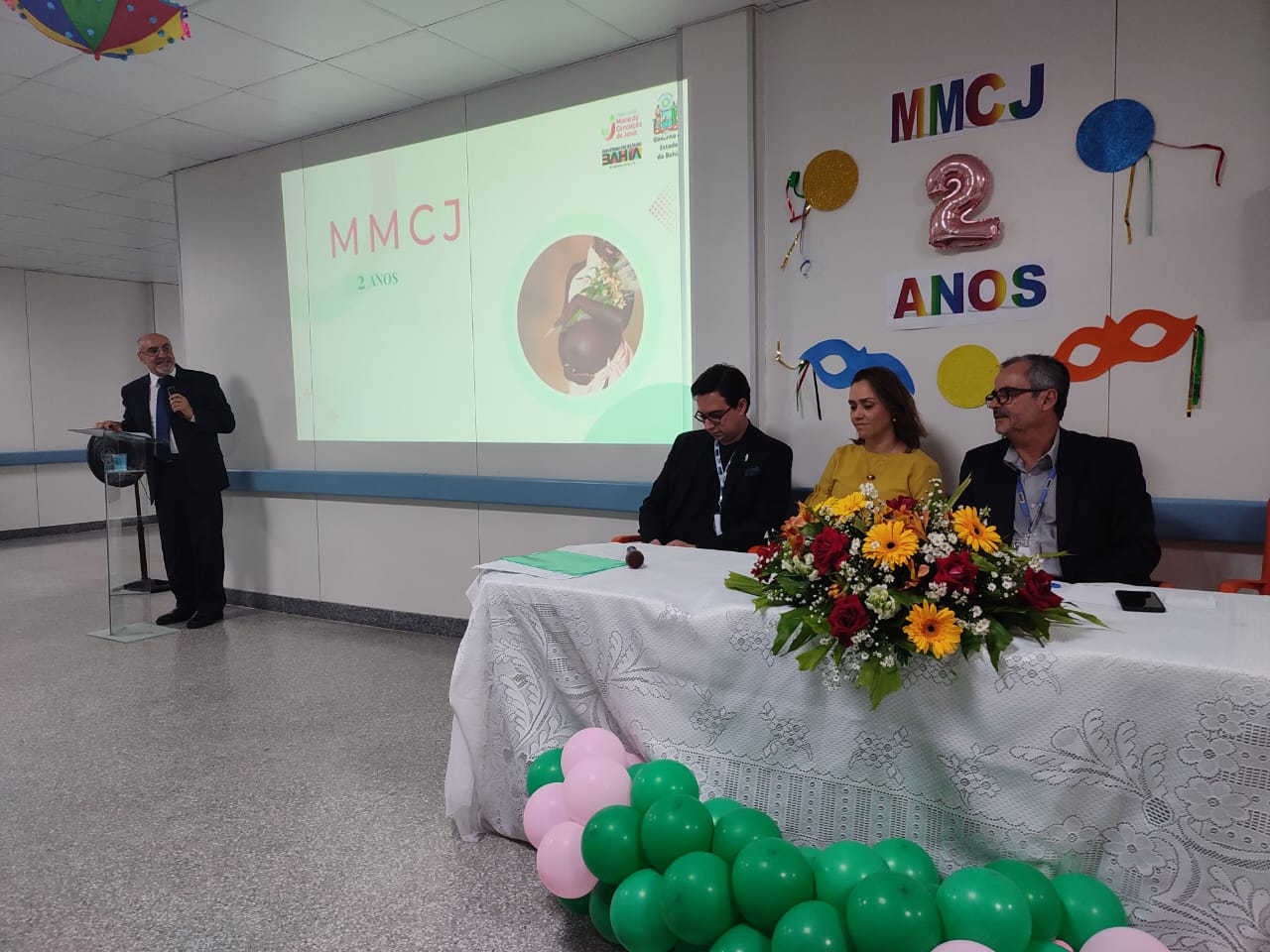 A festa, que contou com a presença do subsecretário da Saúde Paulo Barbosa e diretores de outras unidades e outras autoridades, teve muitas homenagens, alegria e agradecimentos. “Só temos que parabenizar esse trabalho realizado aqui. A Maternidade Maria da Conceição de Jesus se impôs pelo seu trabalho. Quando a gente entra aqui, fica impactado positivamente. O que faz um hospital são as pessoas que trabalham nele. É preciso ter gente cuidando de gente, pessoas envolvidas. Queria parabenizar a equipe da MMCJ por se envolver tanto nesse projeto”, discursou o subsecretário da Saúde.