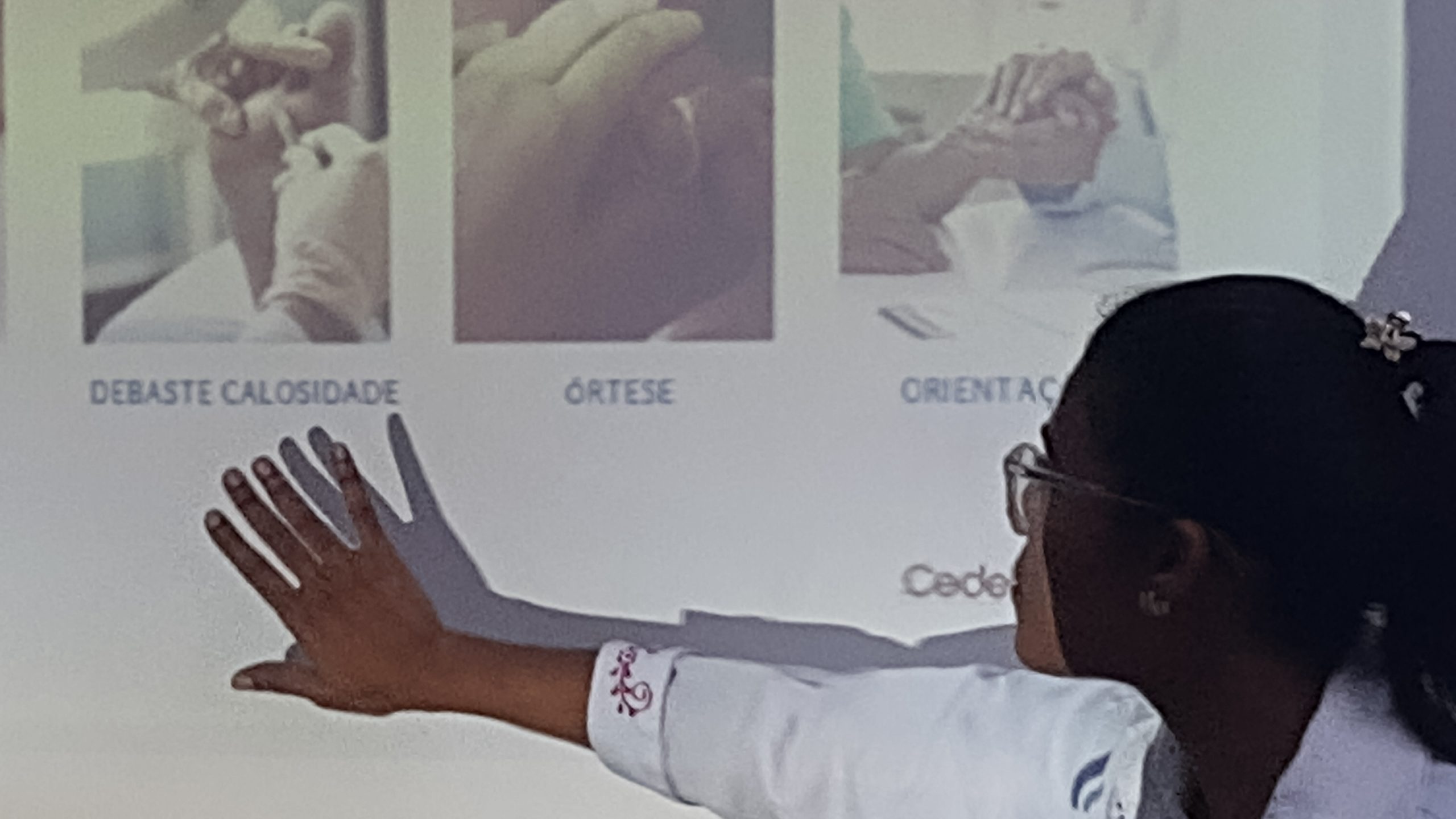 Onsli se emociona ao falar sobre a experiência da Podoprofilaxia. Mostra fotos que sinalizam avanços em calosidades profundas e extensas que são desbastados em uma única sessão com a podiatra. O serviço que começou no passado, fazendo quatro atendimentos por semana, já passa de 60. E esse número pode crescer com a ampliação do espaço físico do Cedeba, conforme já planejado.