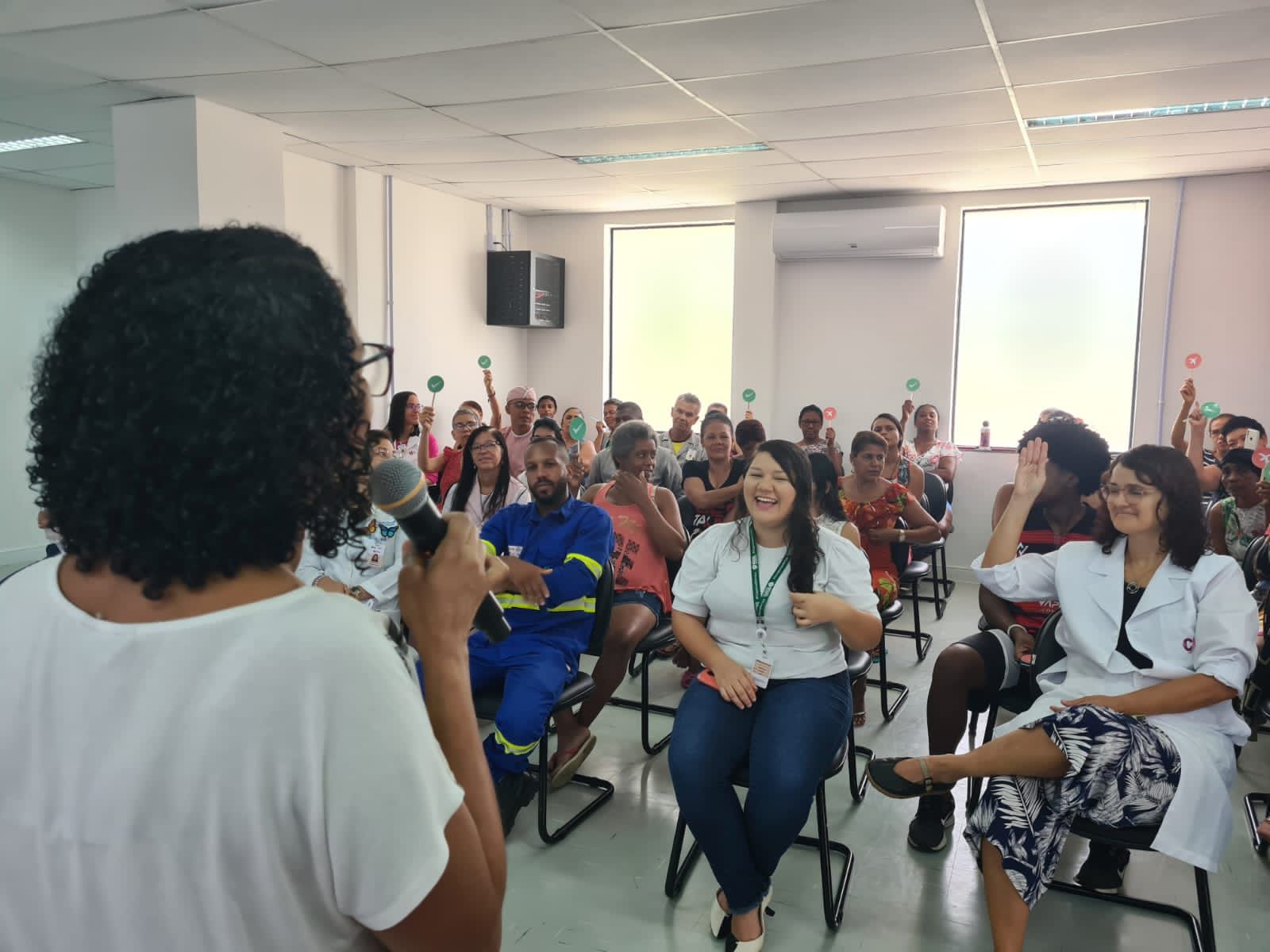 Através de equipe multidisciplinar e da Comissão de Humanização, a unidade realiza, até o fim do mês, salas de espera, rodas de conversa temáticas e atividades lúdicas para pacientes, acompanhantes e colaboradores. A acompanhante Lúcia Helena participou atenta do bate-papo realizado nesta quinta-feira (24), na Casa da Mulher. “É muito importante falarmos sobre violência contra a mulher. Eu mesma já passei por isso e sei que com atividades assim a gente pode aprender e reproduzir a informação para as nossas amigas”, compartilhou.