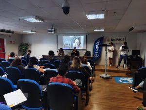 O primeiro dia do seminário contou com a conferência de abertura com o tema Vida em Sociedade: Ética como Dimensão Humana, realizada pela professora e advogada Camila Vasconcelos, da Sociedade Brasileira de Bioética – Bahia e mesas com temas em torno de inteligência artificial, coparticipação em pesquisa e análise de protocolos de projetos de extensão, sempre com o viés da saúde e da ética.