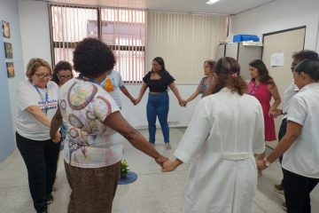 “A dança é como um abraço que damos no mundo através do movimento do corpo”. A mensagem foi distribuída com os participantes. Cada movimento tem um propósito: o passado, o presente e o futuro são bem definidos nas danças circulares. De mãos dadas em círculo, cantando e dançando, ao som de músicas, vivencia-se passos e ritmos completamente diferentes. Colaboradores do Centro de Diabetes e Endocrinologia da Bahia (Cedeba) viveram essa experiência na manhã de hoje com o Encontro de Dança Circular, iniciativa conjunta da Coordenação de Educação em Diabetes e Apoio à Rede (Codar) e Coordenação de Desenvolvimento de Pessoas (CODEP), marcando o Novembro Azul/Diabetes para os colaboradores do Centro de Referência.