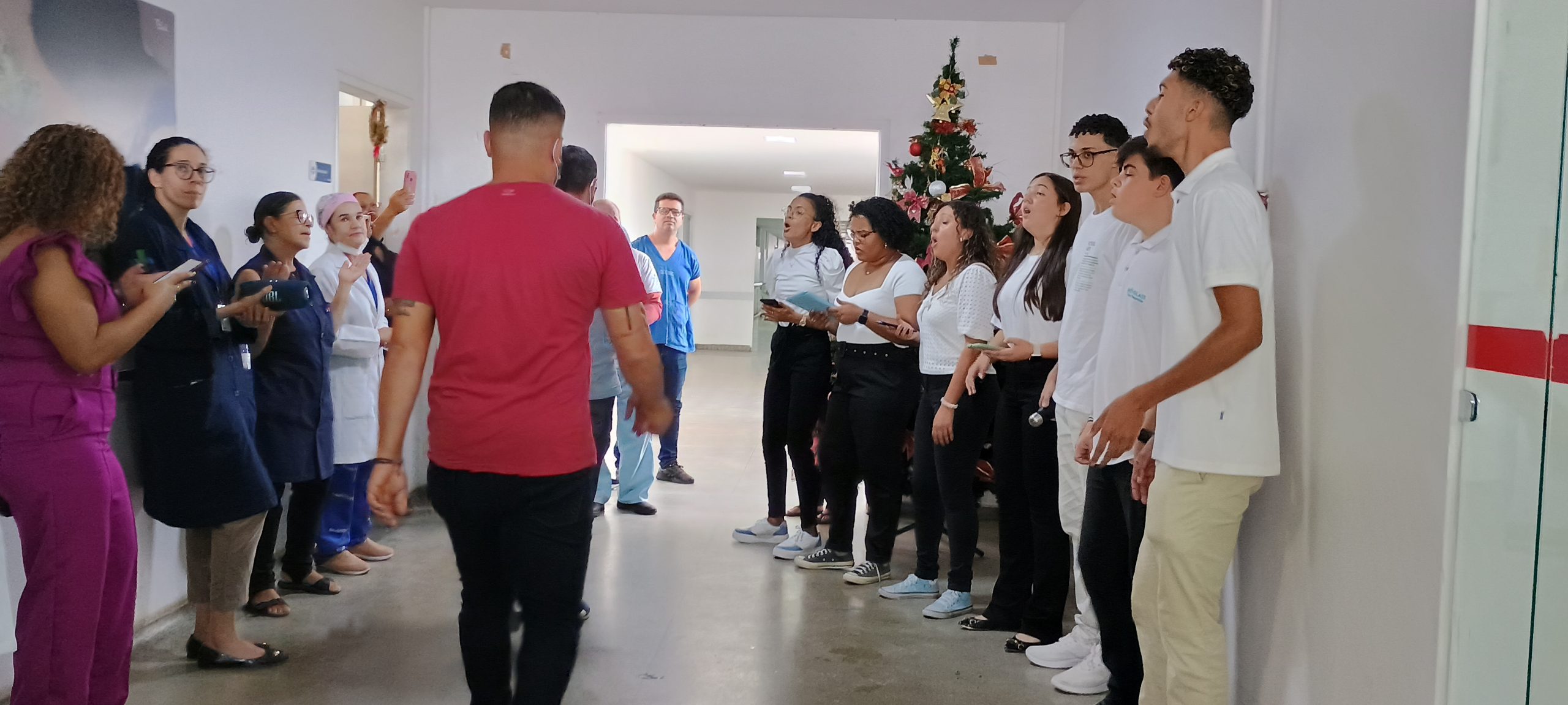 Nesta terça-feira (19), no Hospital Geral de Vitória da Conquista (HGVC) e na Unidade de Pronto Atendimento (UPA), o Coral “Grupo Nosso Tom”, da Igreja Batista Peniel, realizou apresentações promovidas pelo Núcleo de Educação Permanente (NEP) e Grupo de Trabalho de Humanização (GTH) em comemoração às festividades natalinas .