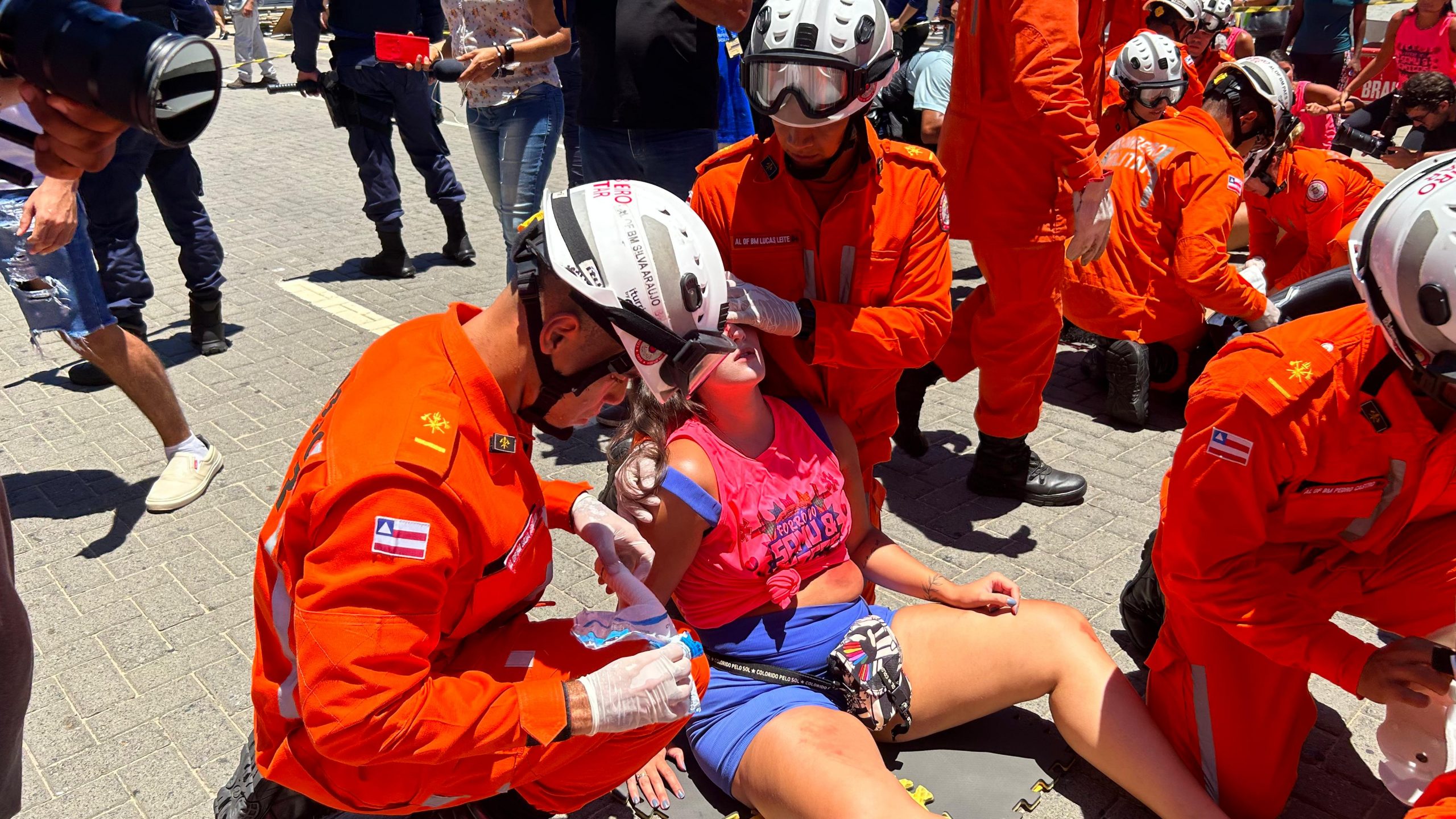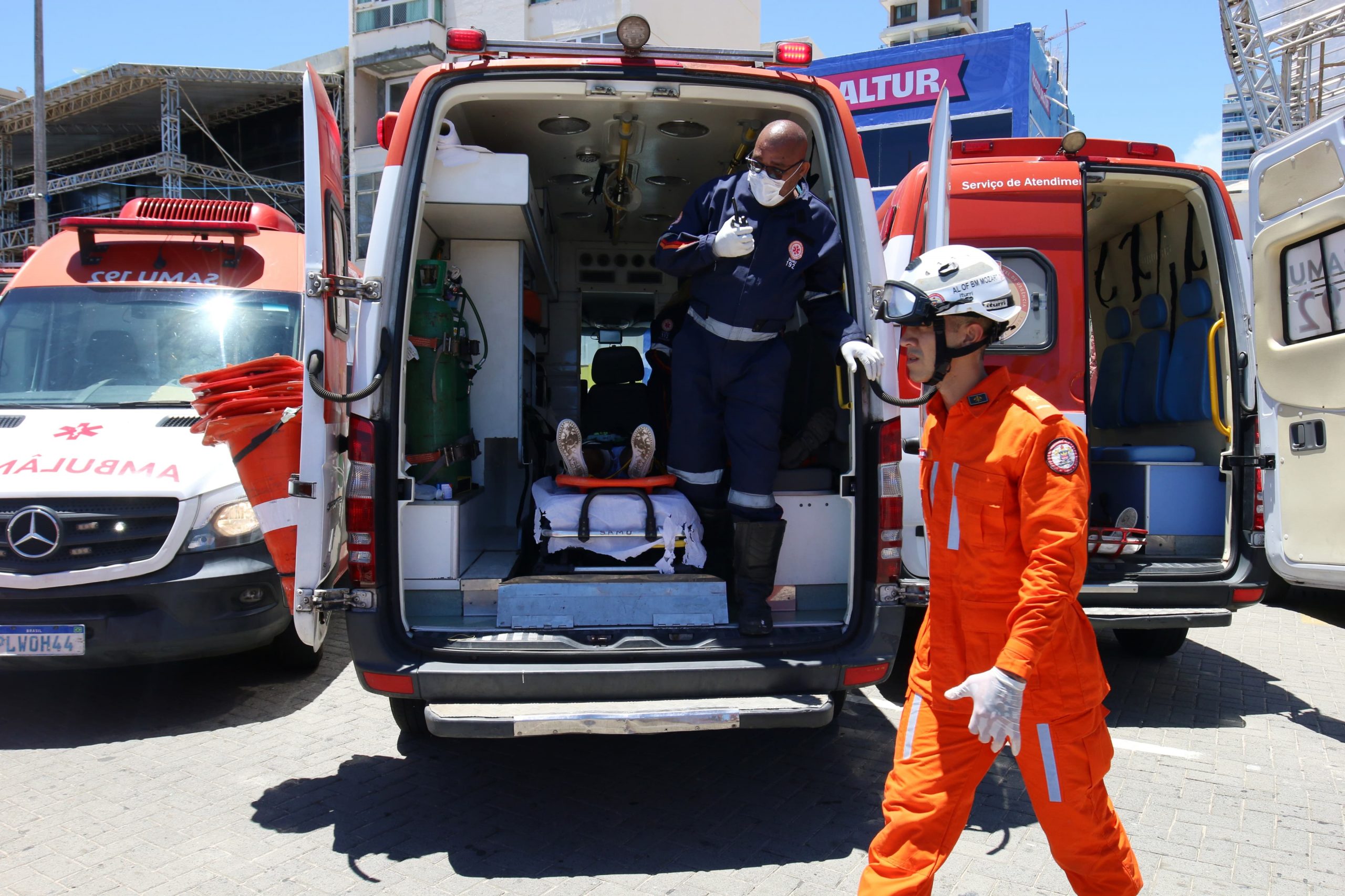 O suporte às vítimas de acidente, como o simulado na ação, tem, ainda, a atuação expressiva do Corpo de Bombeiros Militares da Bahia (CBMB), que, na ocasião, aplicou a técnica de salvamento em altura, dentre outros atendimentos, para o resgate de vítima que estava em cima do trio elétrico. “Nós não esperamos nunca que aconteça a fatalidade, mas, acontecendo, nós estamos preparados. Esse simulado é importante para que a gente exercite as práticas necessárias para atuar numa ocorrência, num grande evento como o Carnaval de Salvador. Estamos aqui com 35 bombeiros e cinco viaturas, para participar com outros órgãos dessa ação, visando a proteção do nosso folião”, enfatizou o coronel BM Jadson.