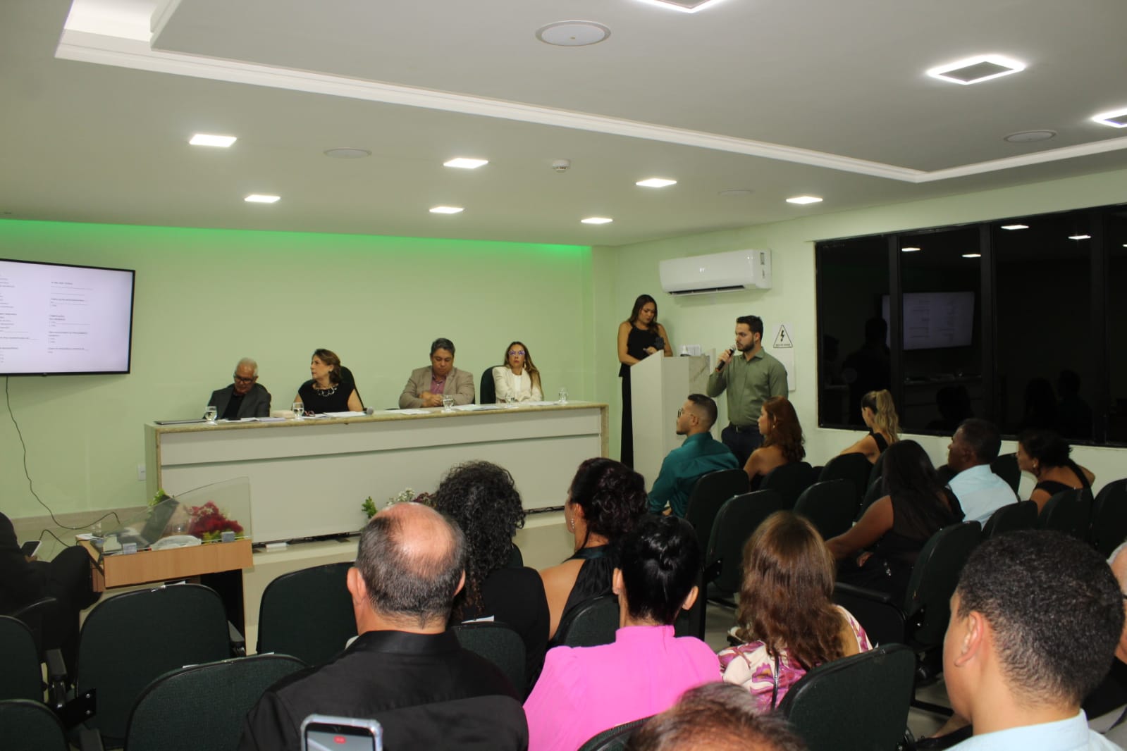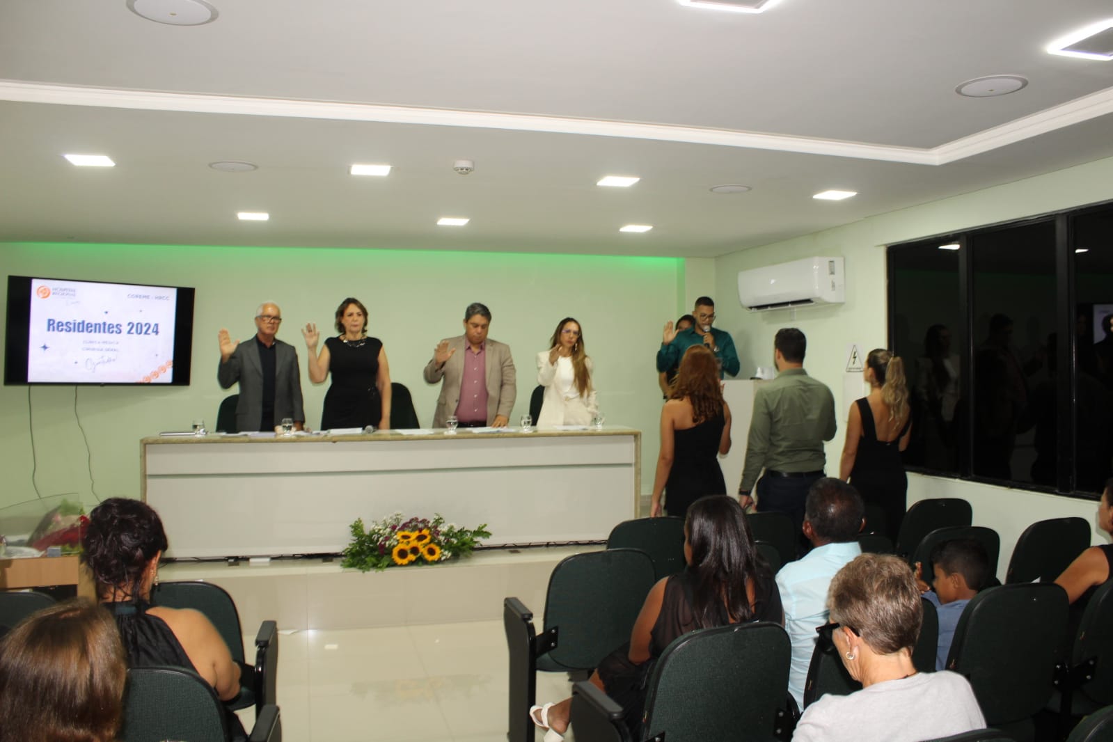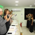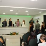 Composição da mesa durante a cerimônia – Médicos coordenadores do Programa de Residência Médica: Emmanuel Conrado Sousa (Cirurgia Geral) e Milena Vasconcelos (Cardiologia), representando também na ocasião Eric Ettinger De Menezes Júnior (Medicina Intensiva).