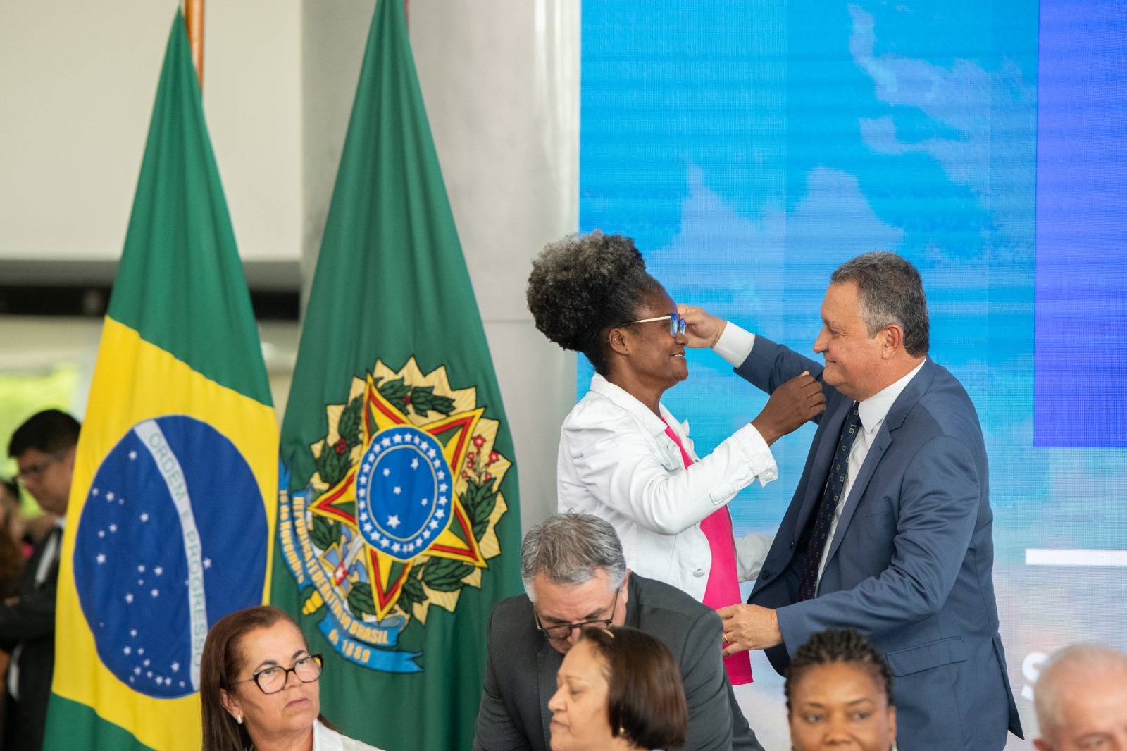 Durante a cerimônia que divulgou resultados de modalidades do Novo PAC, realizada pelo presidente Luiz Inácio Lula da Silva, no Palácio do Planalto, na manhã desta quinta-feira (7), a baiana Marinalva Maria dos Santos contou sua história de superação contra o câncer, doença que foi diagnosticada e começou a ser tratada através da Policlínica Regional de Saúde, em Guanambi. Presentes na solenidade em Brasília, o ministro Rui Costa e o governador Jerônimo Rodrigues foram citados no discurso de Marinalva.